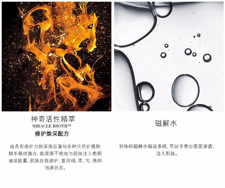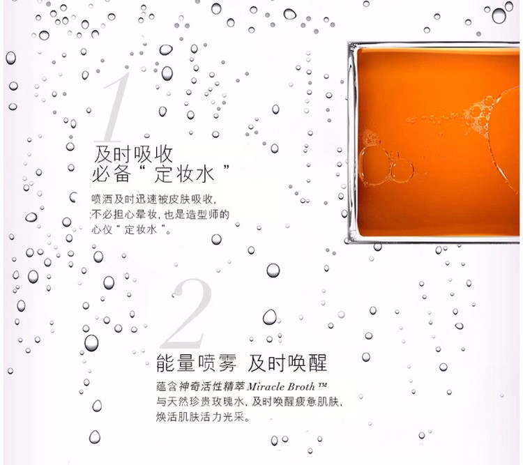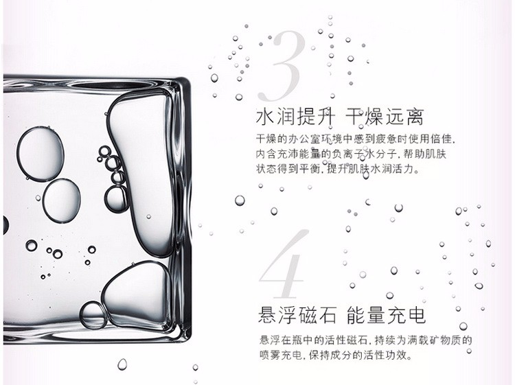 能瞬间滋润、舒缓并镇静干燥的肌肤。内含充满能量的负离子水分子。