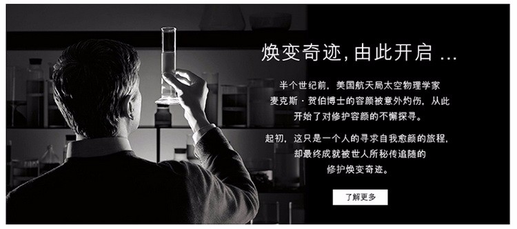 品牌的诞生,始于麦克斯•贺伯博士在实验室遭遇的意外,唤起他对修护容颜的探索之旅。