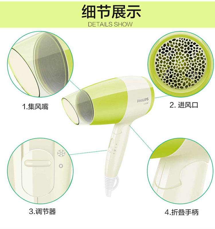 永日(yongri) 吹风机家用 宿舍寝室折叠电吹风机 1600W小功率家用吹风筒 莫兰迪(1300-1600W)