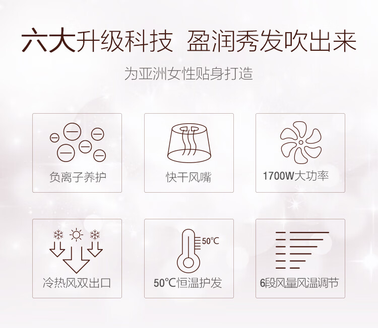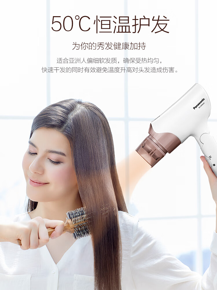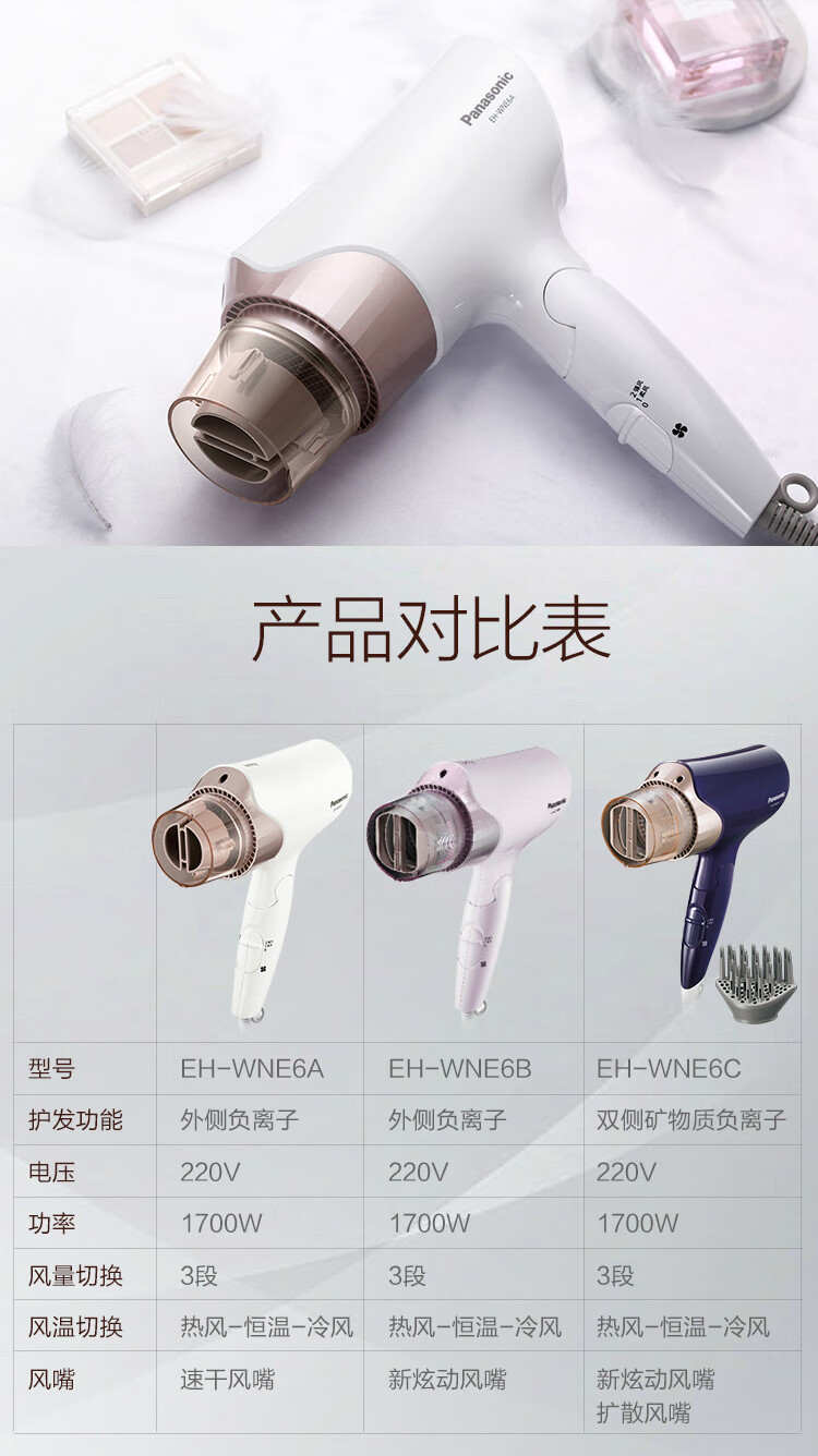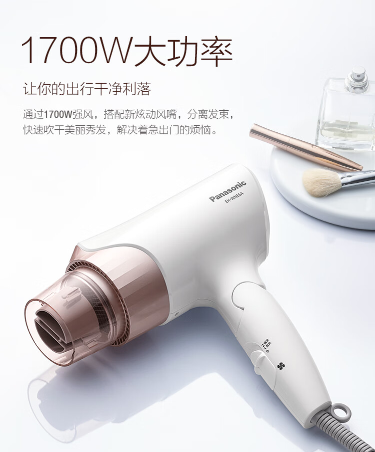 松下(Panasonic)电吹风 家用大功率电吹风筒 高速大风力速干 折叠便携 负离子护发 EH-WNE6A