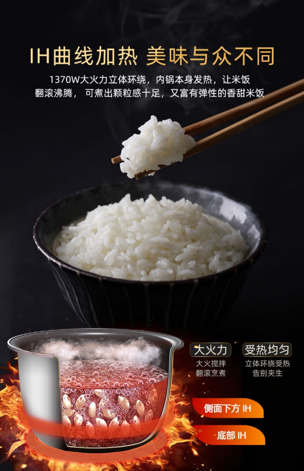苏泊尔(SUPOR)电饭煲电饭锅IH电磁加热智能预约触摸操控精铁球釜内胆智能电饭煲SF40HC32