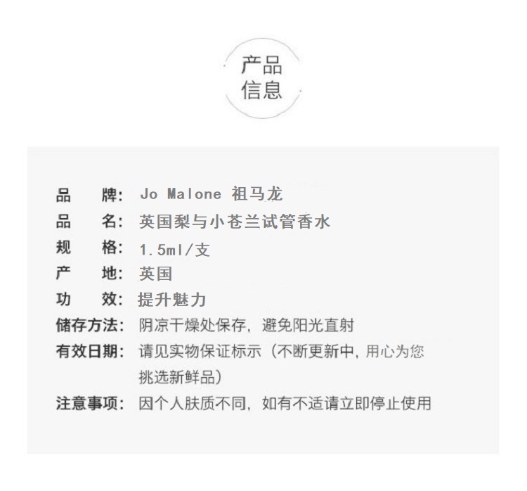 英国Jo Malone 祖马龙试管香水 英国梨与小苍兰1.5ml