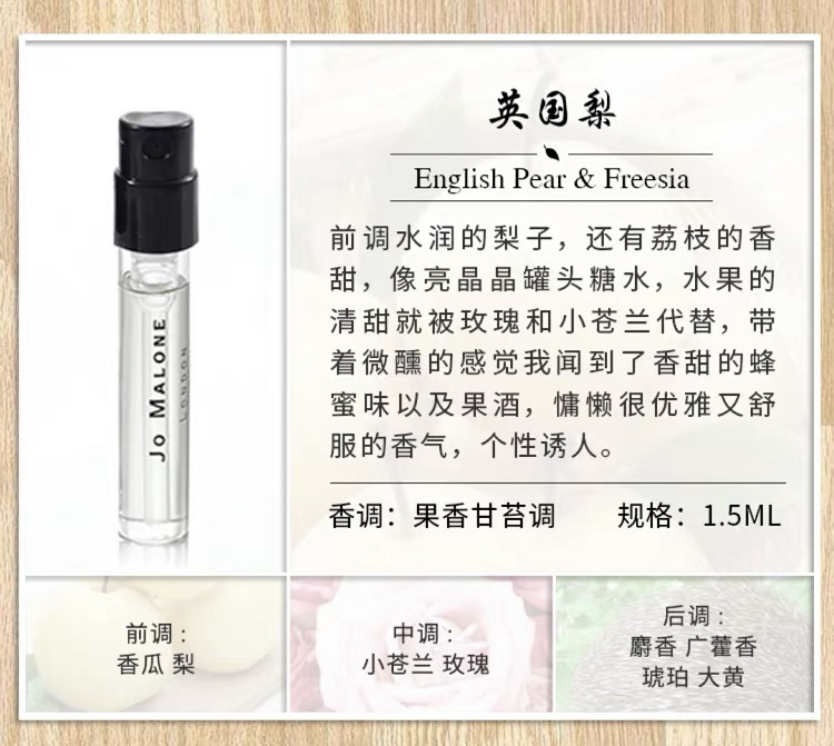 香港直邮 英国Jo Malone 祖马龙试管香水 英国梨与小苍兰1.5ml