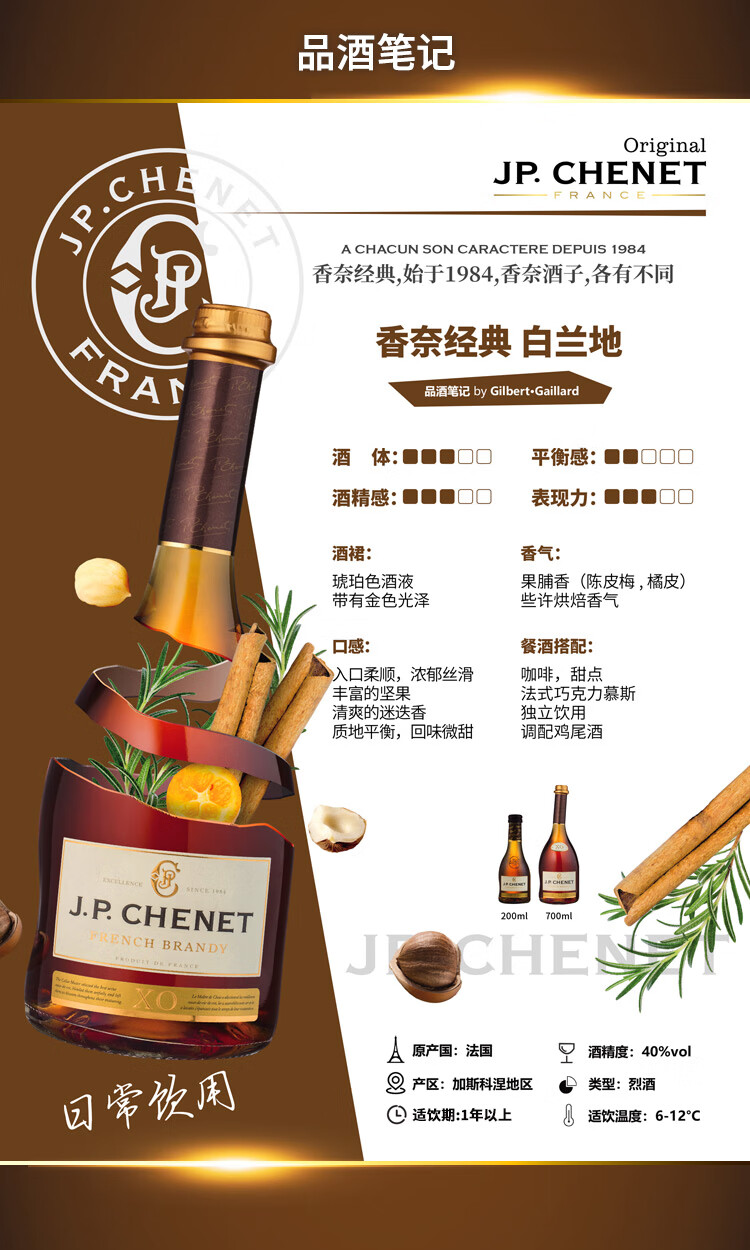 【授权商品】路易马西尼世尊XO白兰地700ml洋酒烈酒鸡尾酒调酒