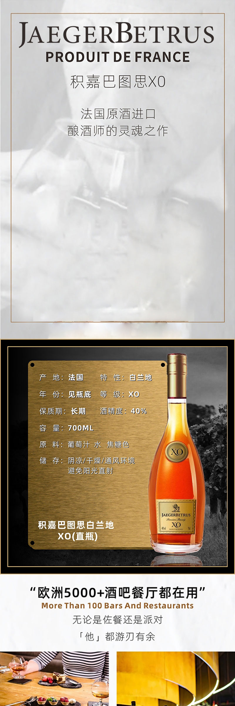 【授权商品】路易马西尼世尊XO白兰地700ml洋酒烈酒鸡尾酒调酒