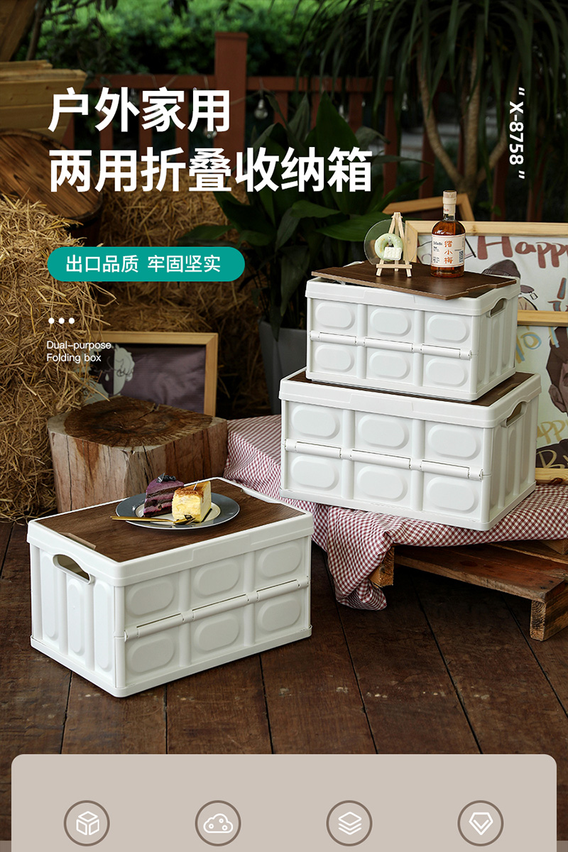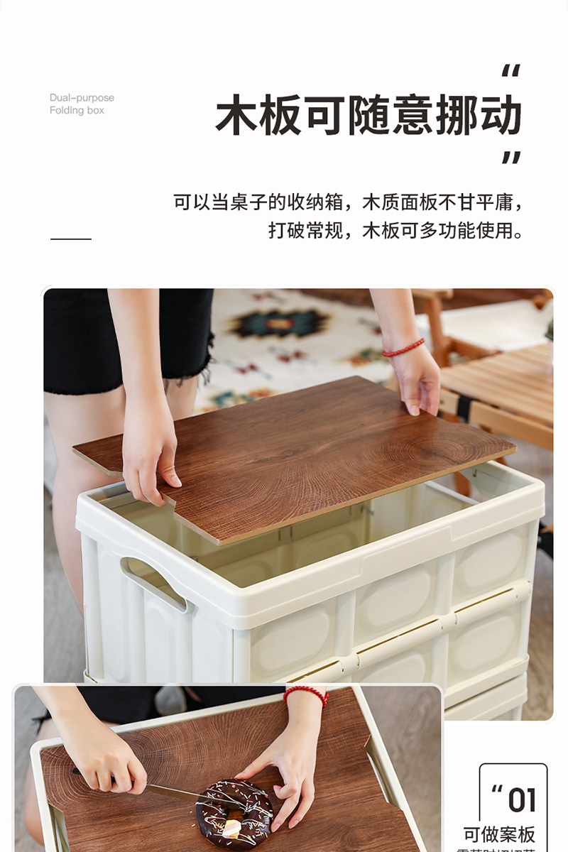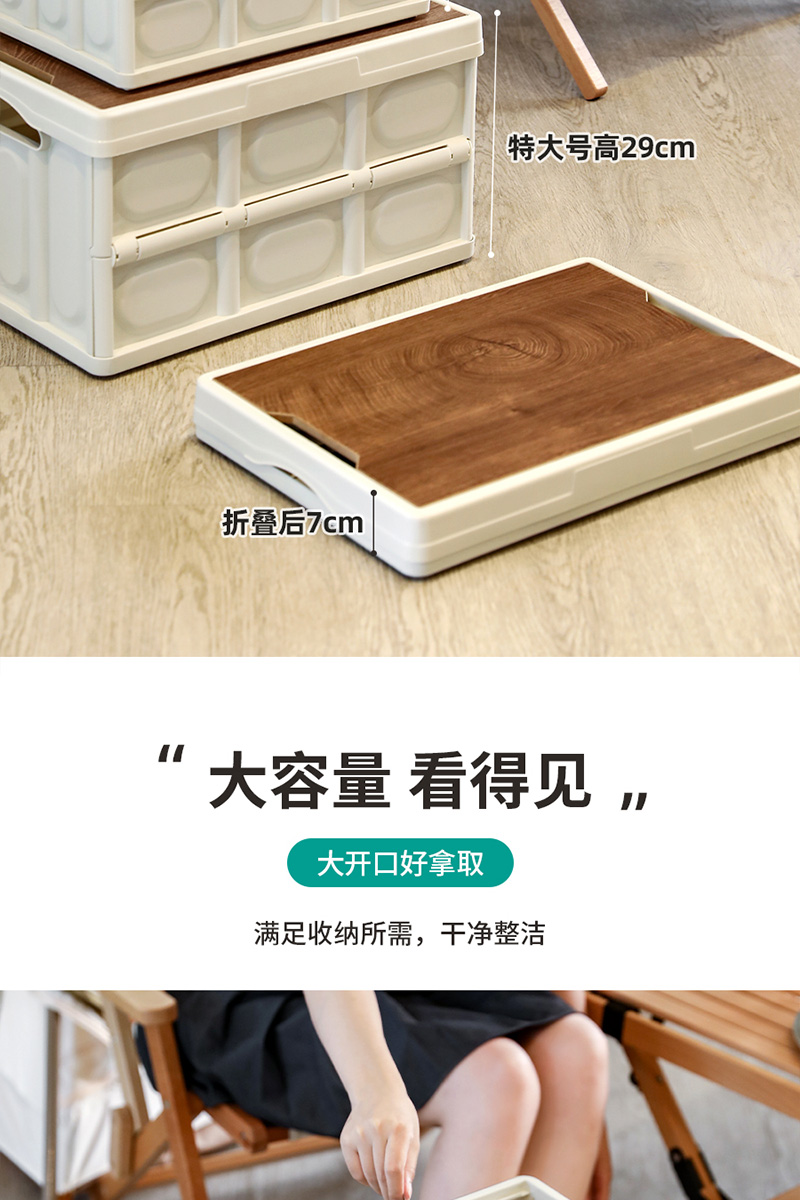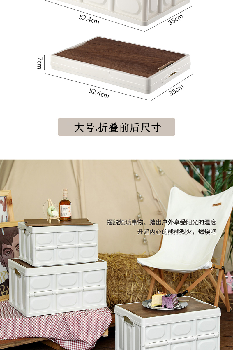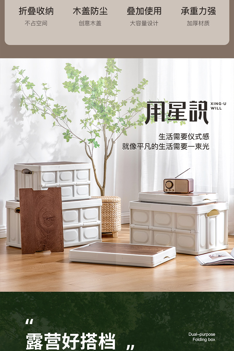 汇奇宜创意加厚带木板盖户外收纳箱车载尾箱露营野餐可折叠储物箱子