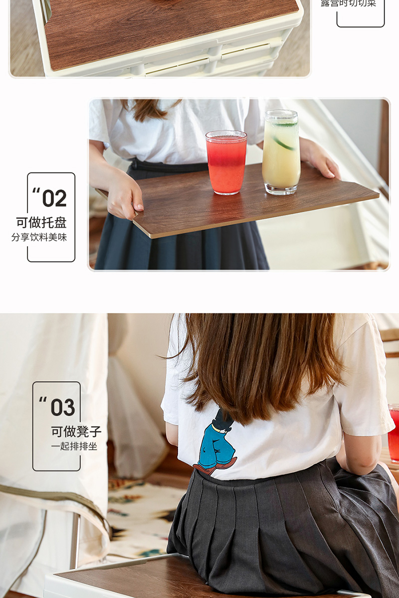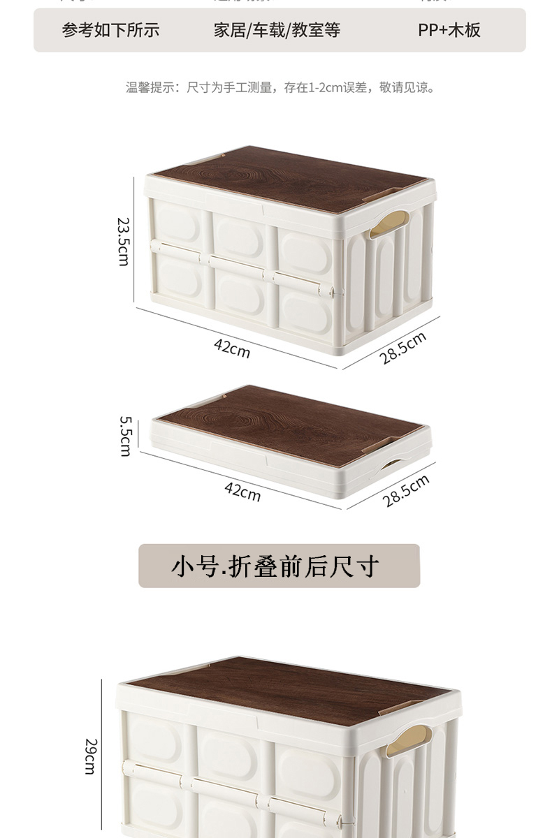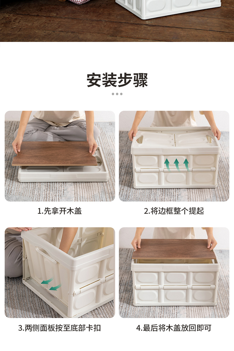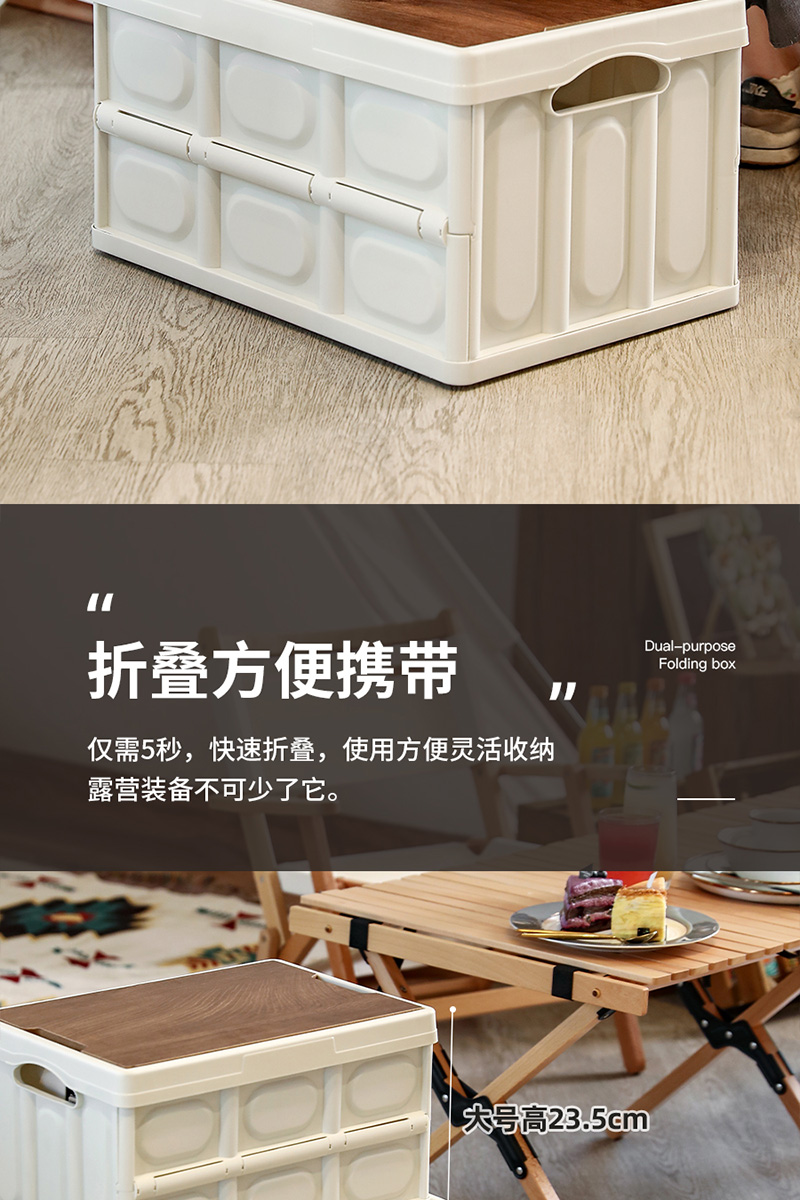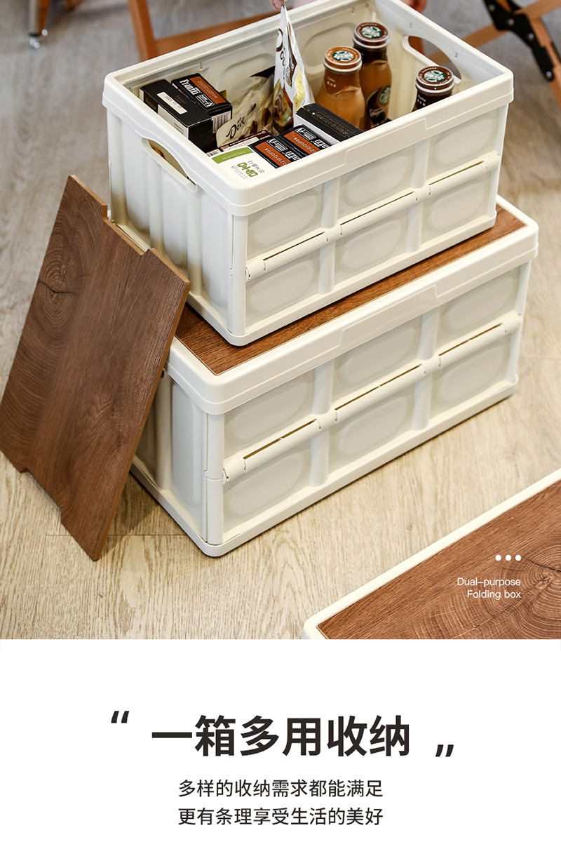 汇奇宜创意加厚带木板盖户外收纳箱车载尾箱露营野餐可折叠储物箱子