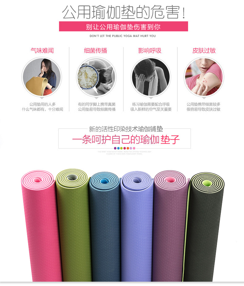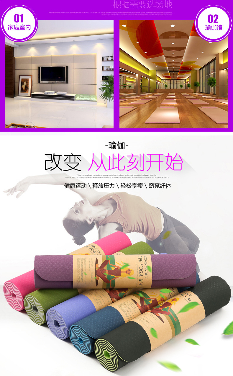 汇奇宜双色加长TPE瑜伽垫健身垫子环保防滑