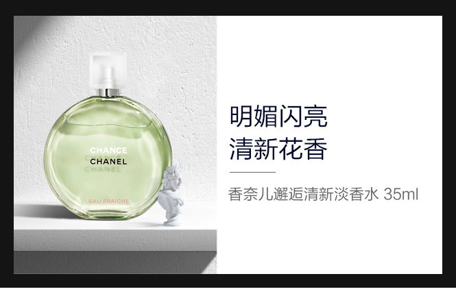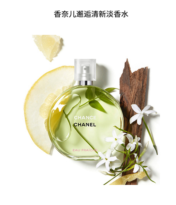 规格50ml。香奈儿邂逅香水以清新花香为主调,充分表现时代女性充满活力及勇敢果断的一面。圆形瓶身的香水。圆,象征着命运之轮,引领我们进入那旋转不息的世界。继经典的CHANEL No.5后,全新香氛CHANCE以崭新的浑圆形象,成为香水新经典。清新淡香水,幸运的又一次眷顾。闪亮清爽的绿色香水, 仿佛幸运与欢乐的化身。闪亮活力的清新花香气息,自然迷人却内涵丰富。