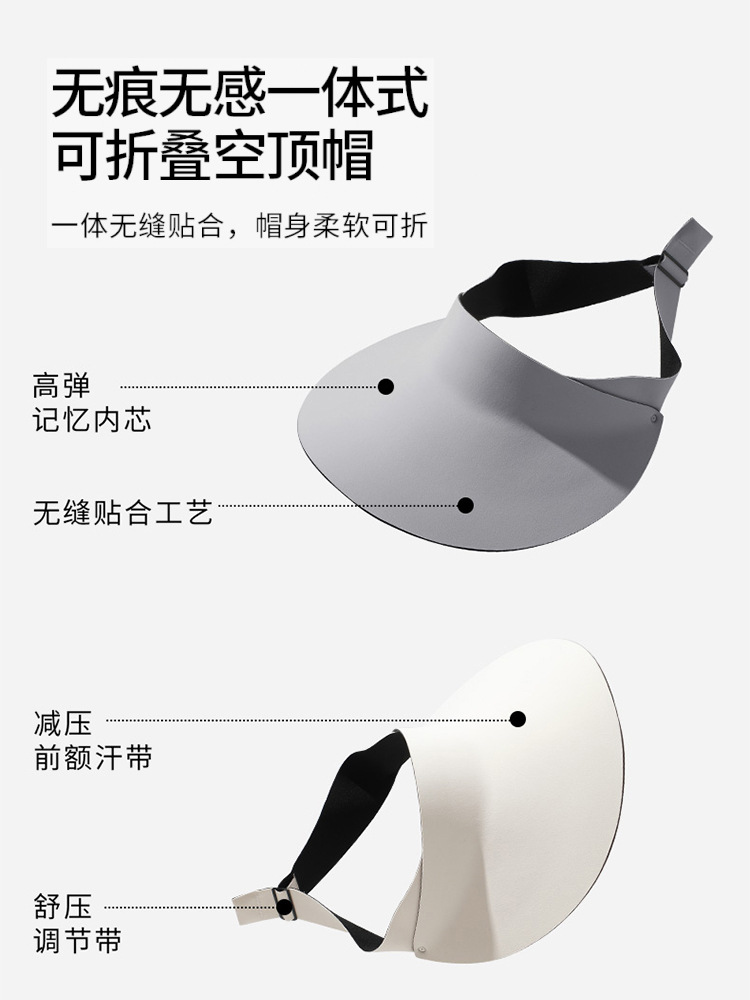 CZH upf50+无痕冰丝一体空顶防晒帽女夏季防紫外线遮阳帽可折叠运动骑行太阳帽子