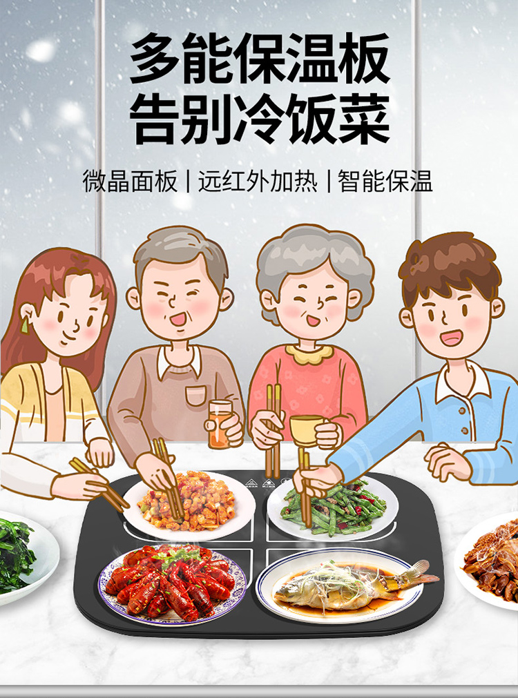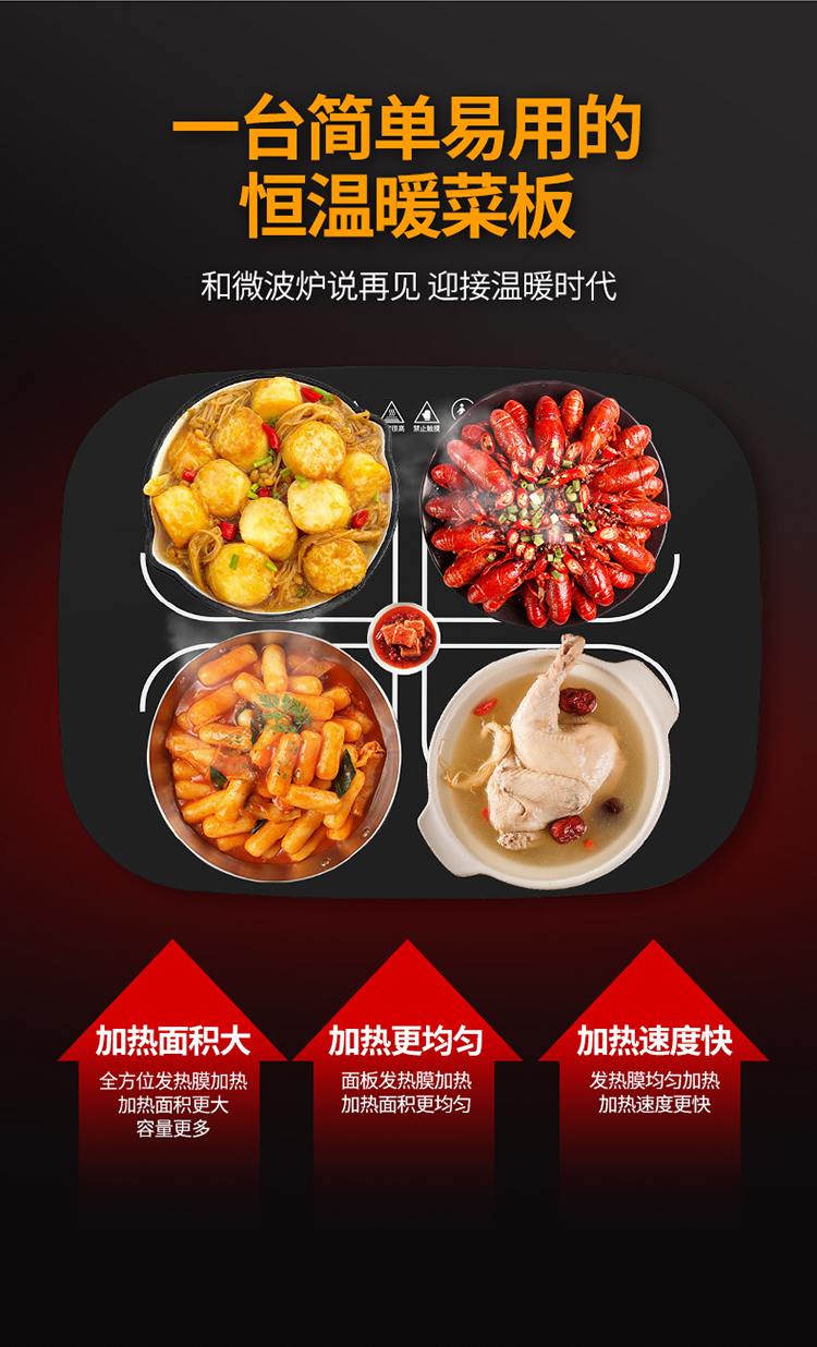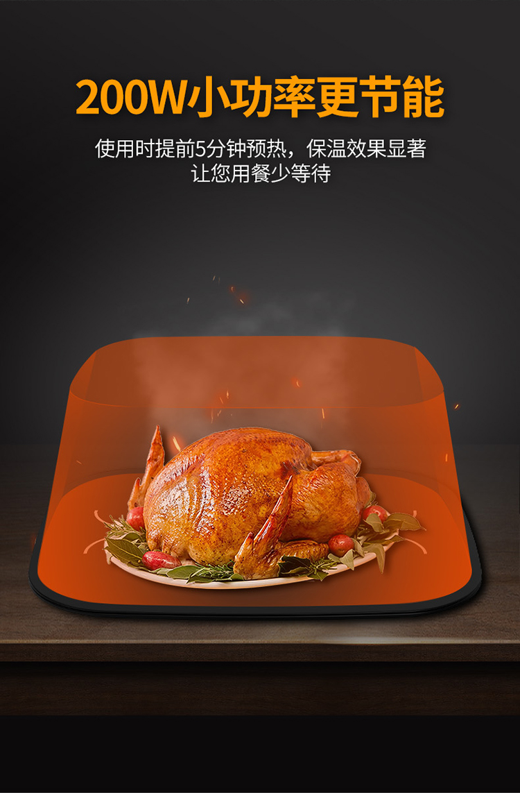 卡屋 热菜板 多能保温板 拒绝冷饭菜 圆形600mm 铝合金包边/智能调温/数显/预约定时/手动旋转 300W