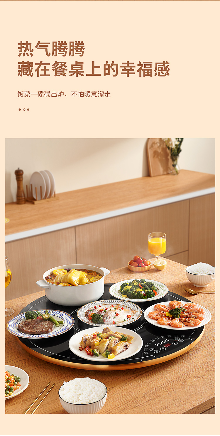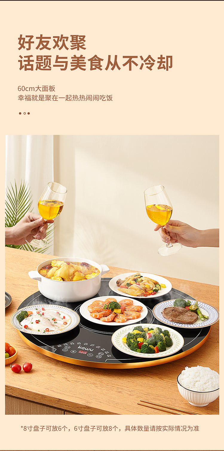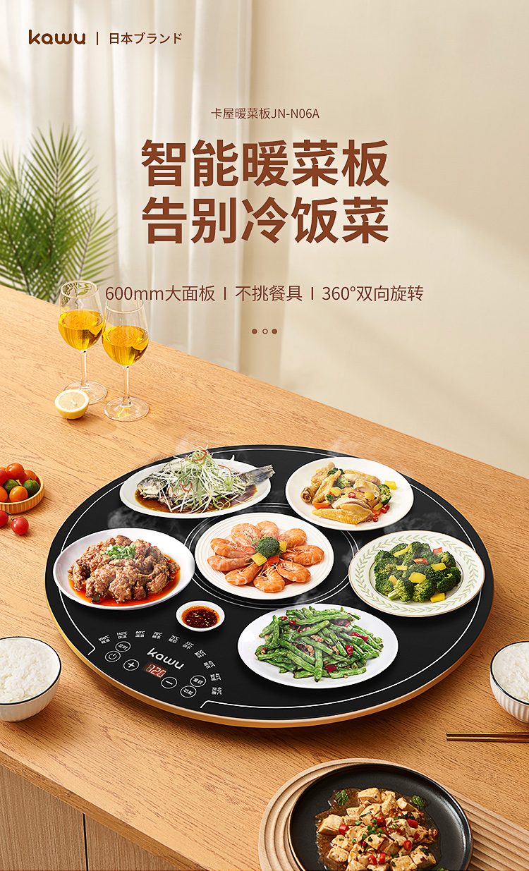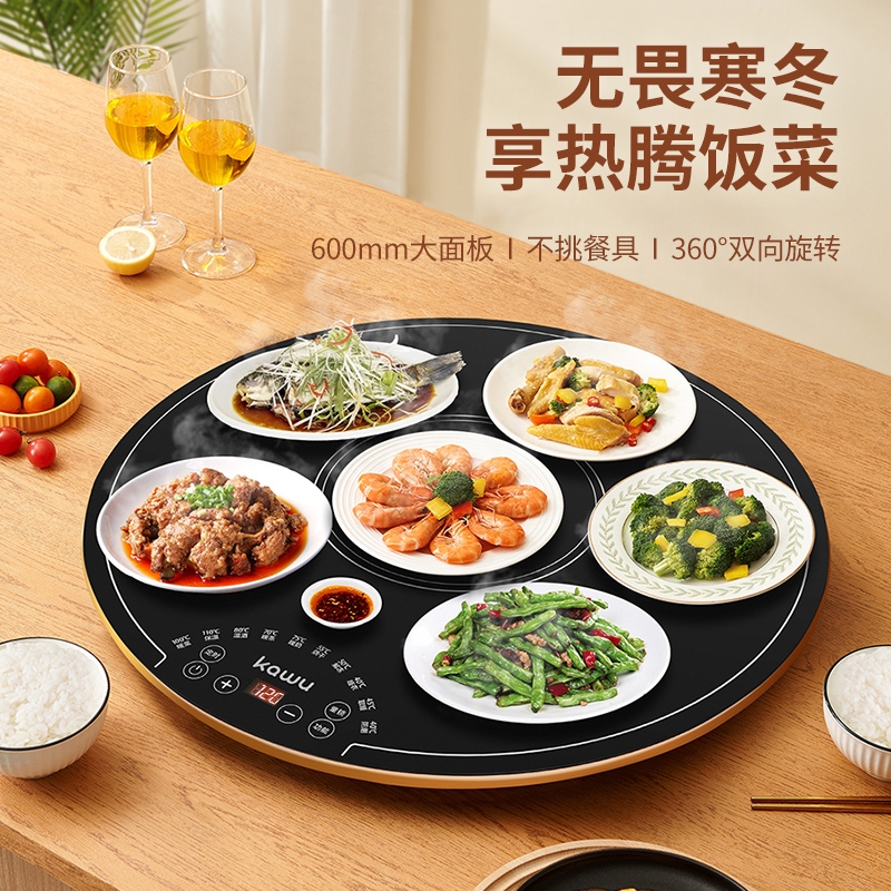 卡屋 热菜板 多能保温板 拒绝冷饭菜 圆形800mm 铝合金包边/智能调温/数显/预约定时/手动旋转 500W JN-N08A