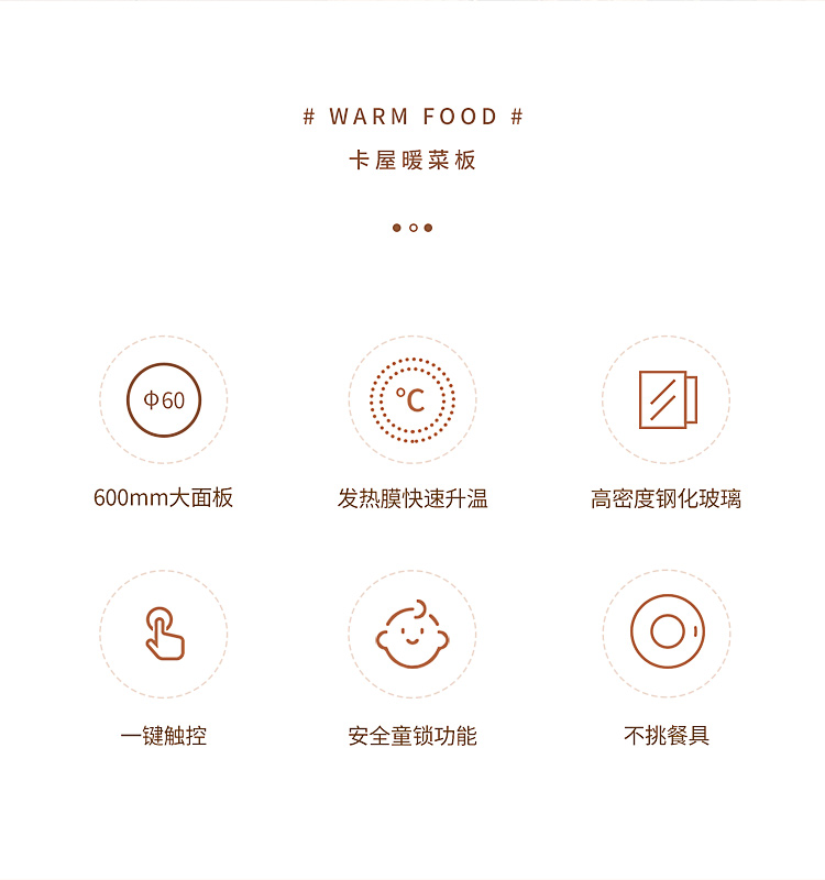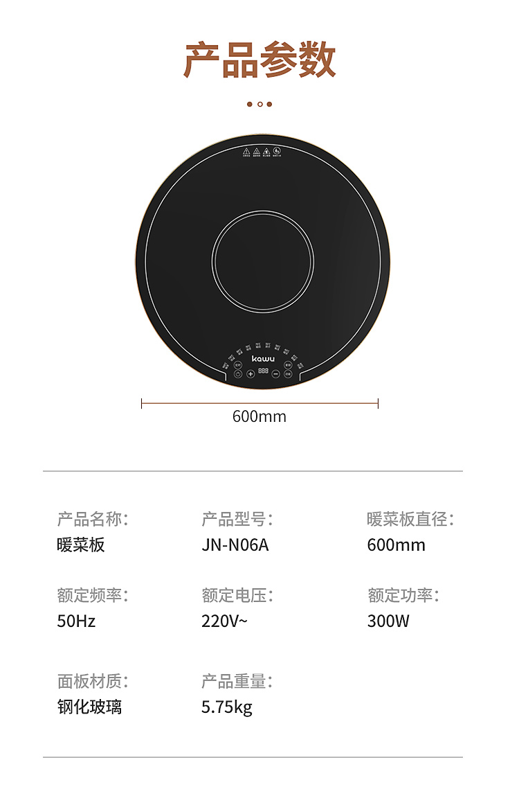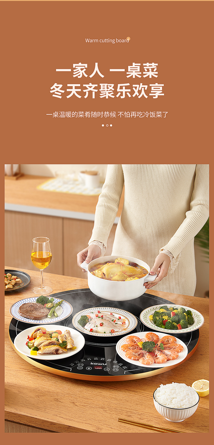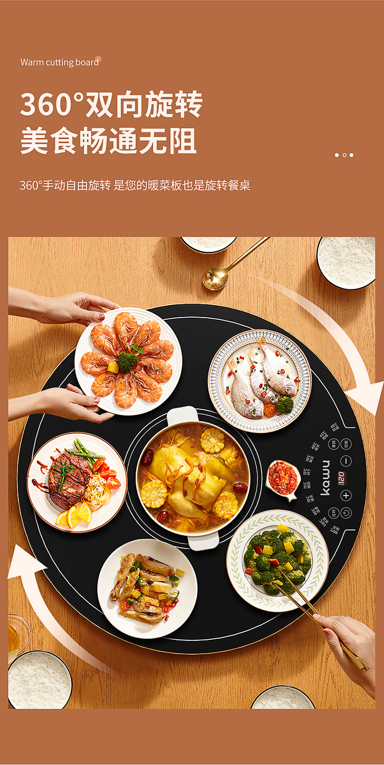 卡屋 热菜板 多能保温板 拒绝冷饭菜 圆形800mm 铝合金包边/智能调温/数显/预约定时/手动旋转 500W JN-N08A