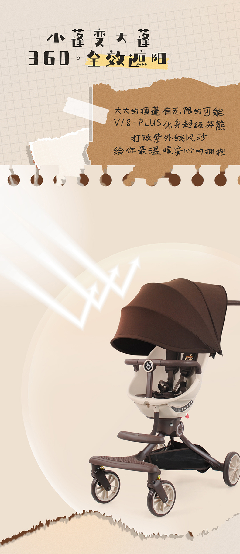 (新品首发)宝宝好V7-焦糖奶茶溜娃神器超轻便可折叠儿童双向手推车