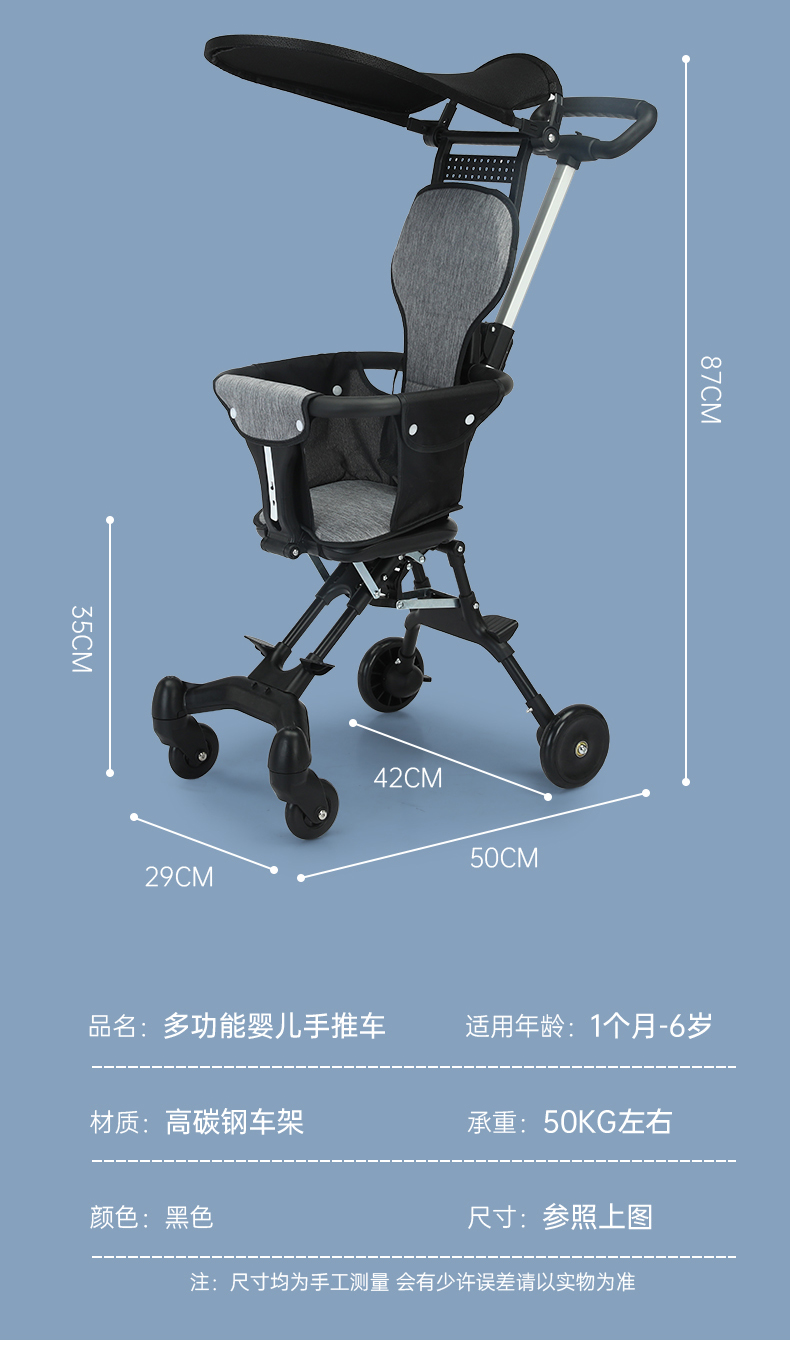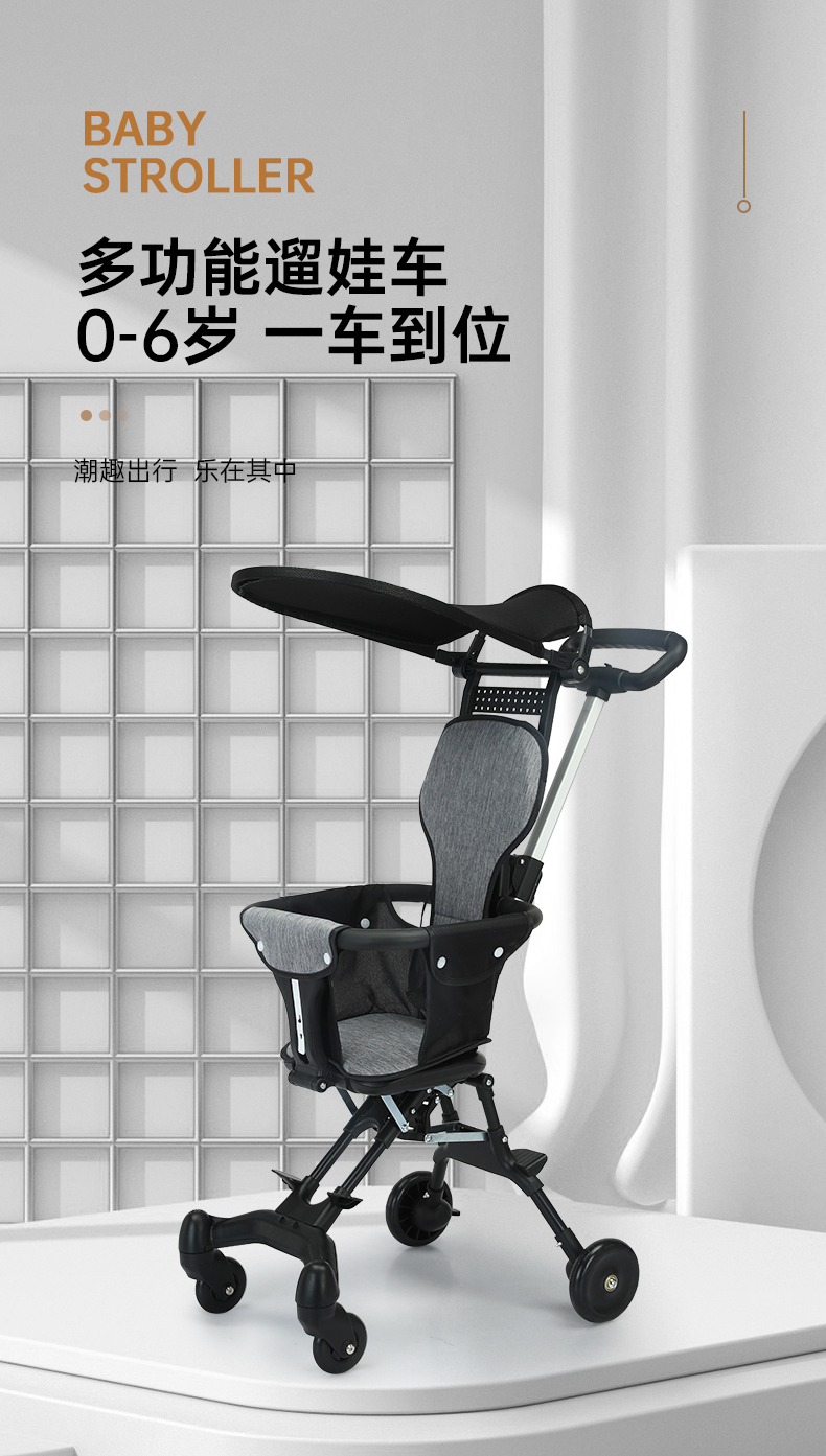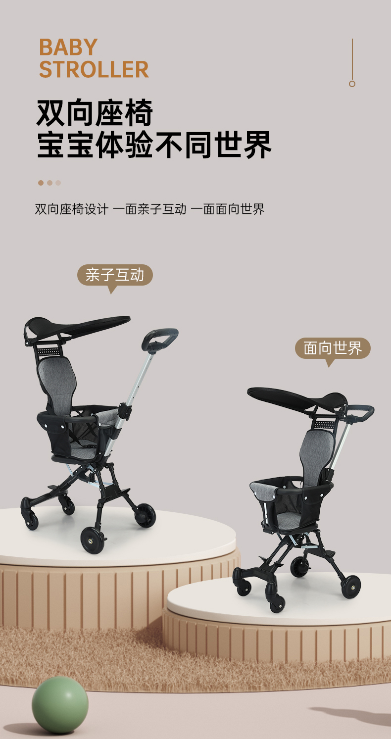 秋冬出行爆款遛娃神器手推车可坐可躺儿童溜娃轻便可折叠双向四轮推车轻便折叠婴儿车