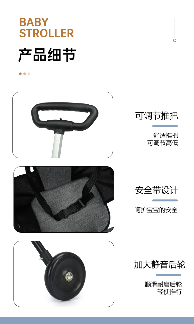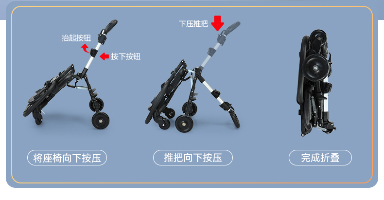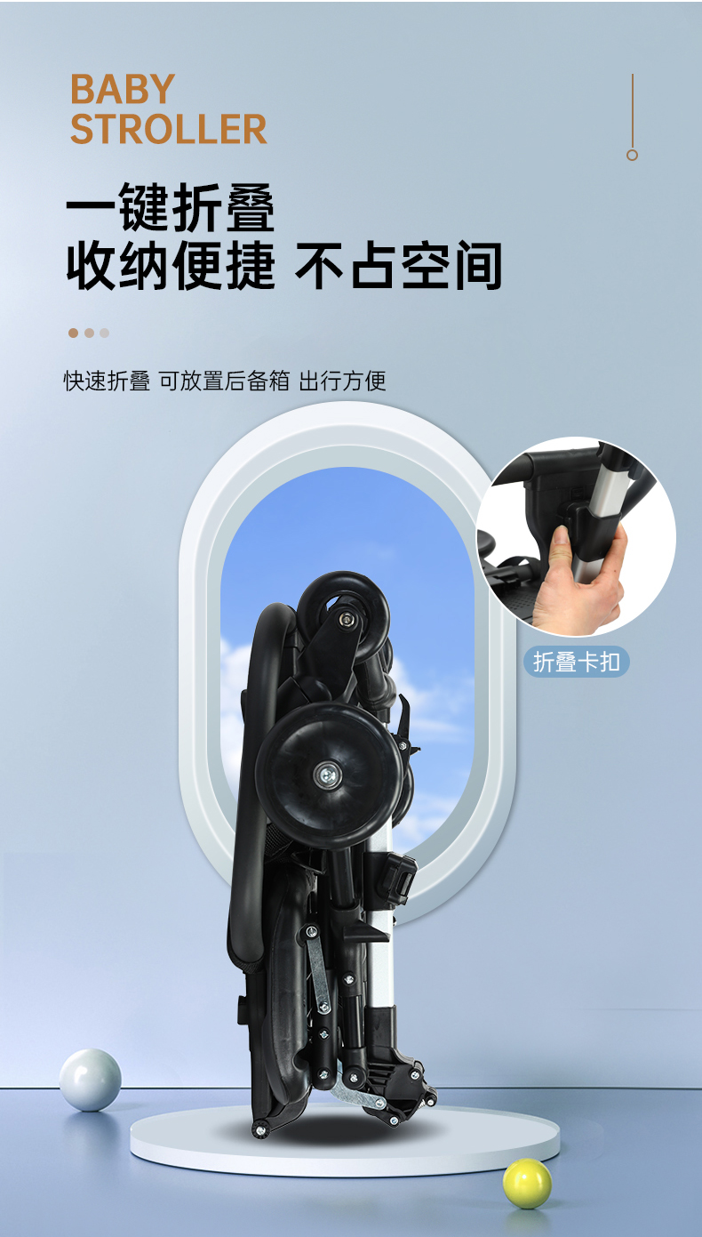 宝宝好【新款】A10三折手推车婴儿车可坐可躺便携推车可折叠童车