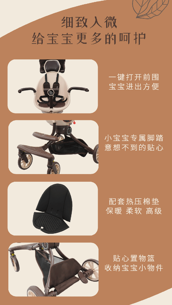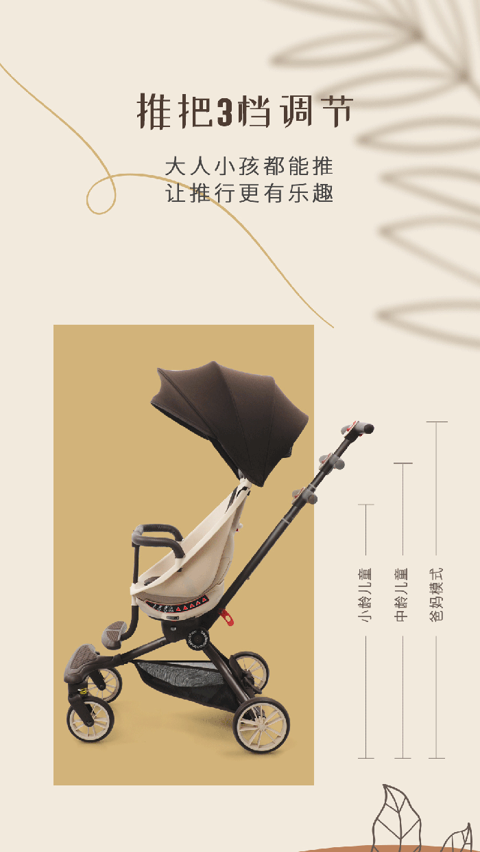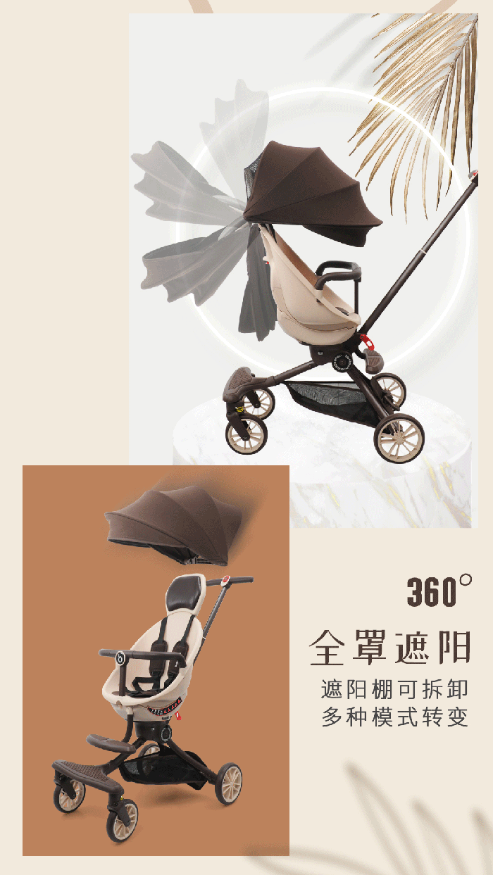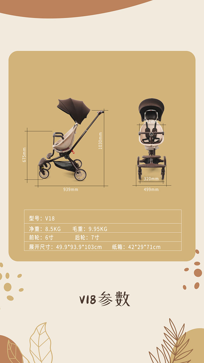 (新品首发)宝宝好V7-焦糖奶茶溜娃神器超轻便可折叠儿童双向手推车