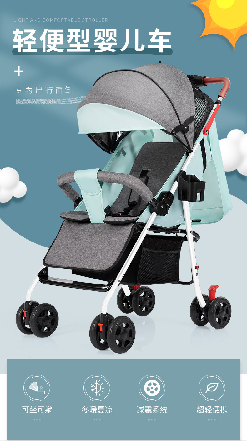 秋冬出行爆款遛娃神器手推车可坐可躺儿童溜娃轻便可折叠双向四轮推车轻便折叠婴儿车