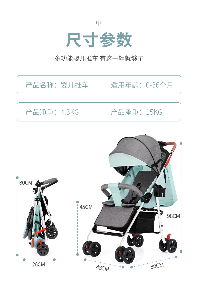宝宝好【新款】A10三折手推车婴儿车可坐可躺便携推车可折叠童车