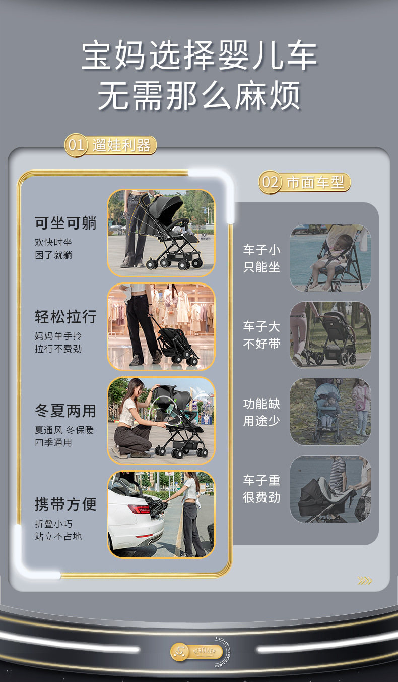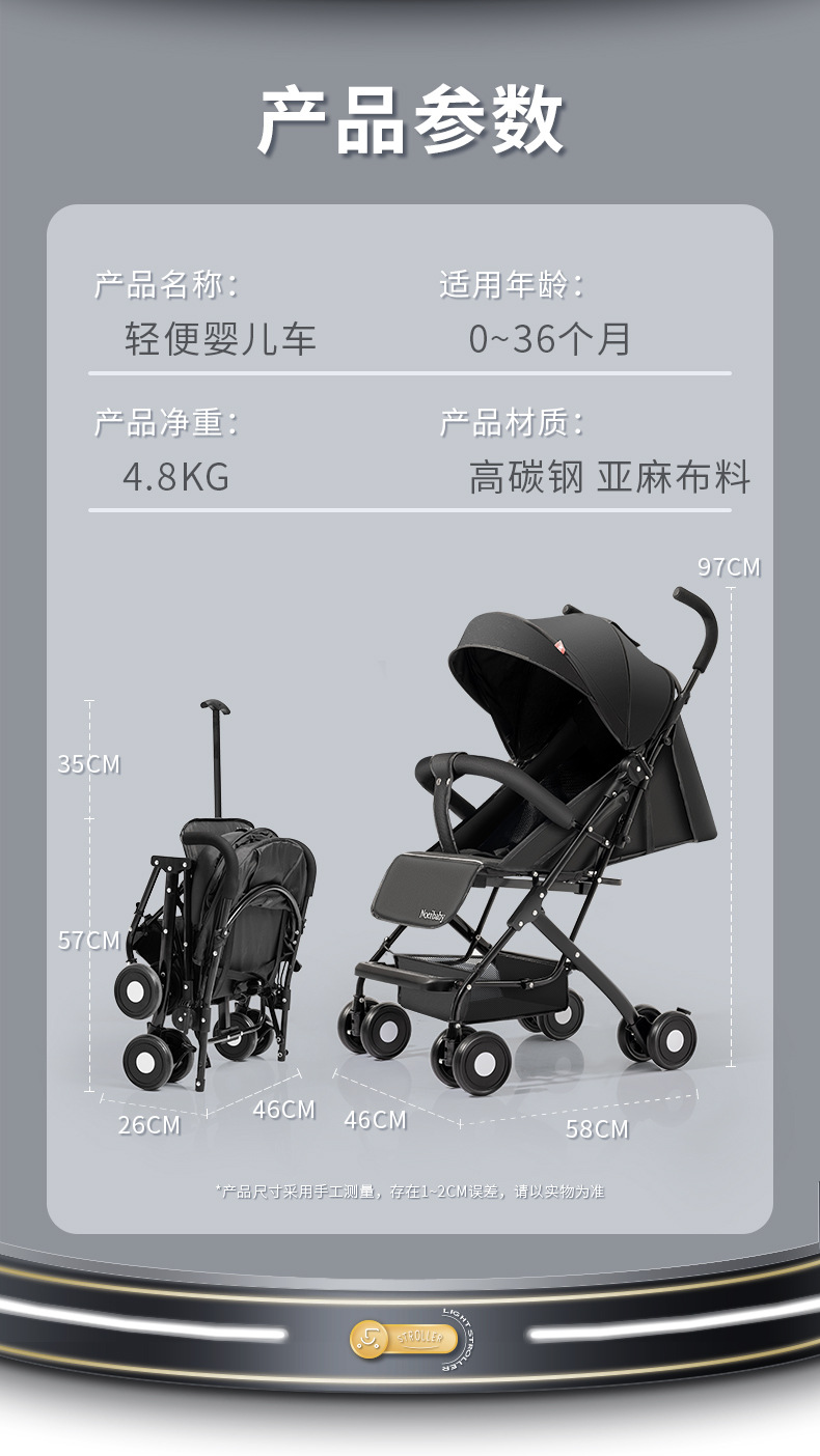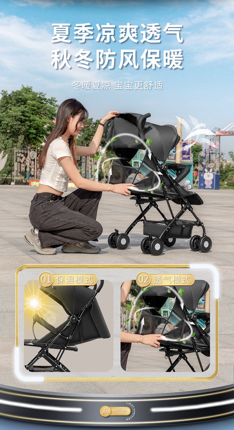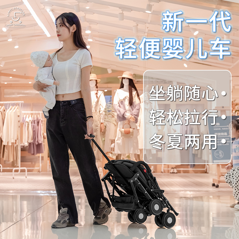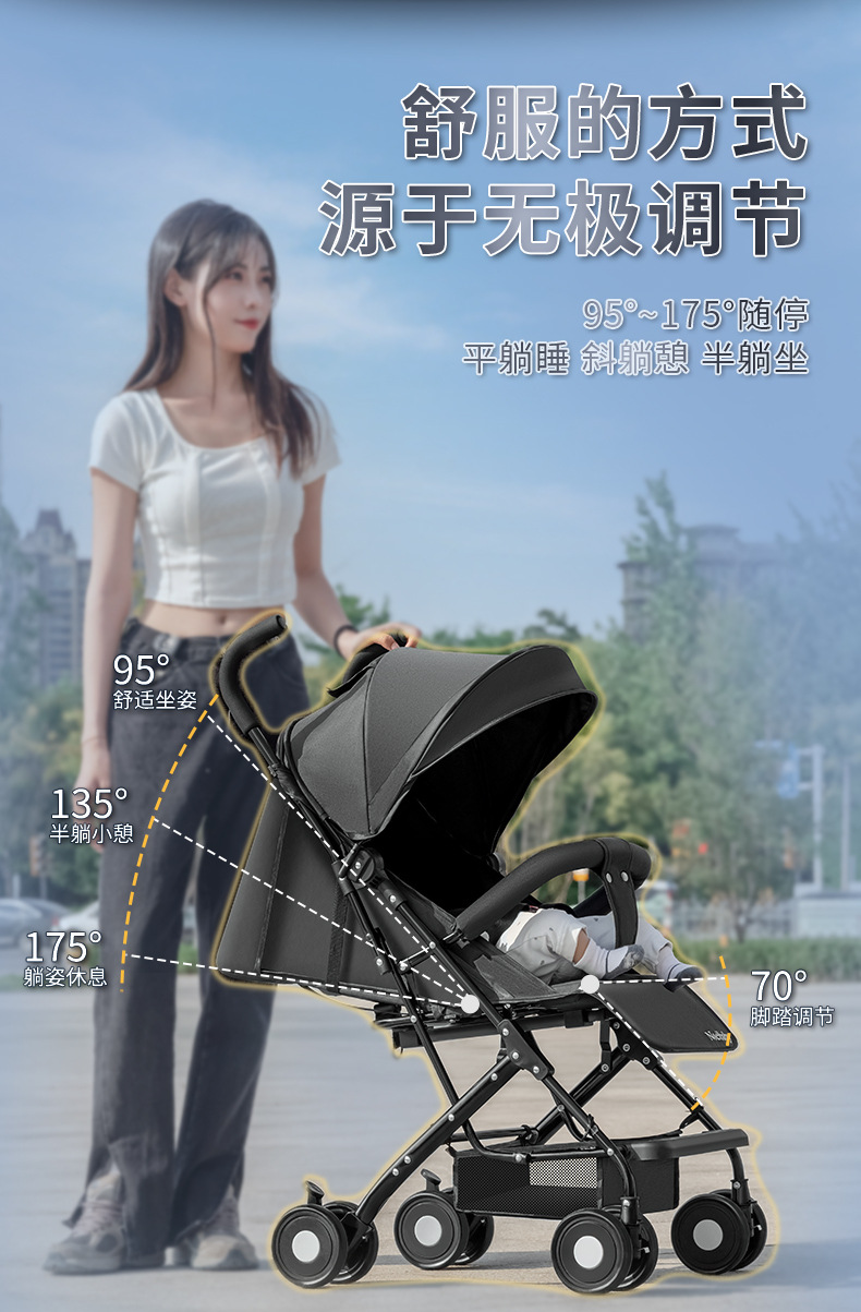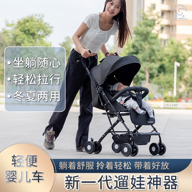 兔小迪 婴儿推车可坐可躺轻便折叠避震 儿童宝宝手推车遛娃伞车五点式安全带溜娃推车