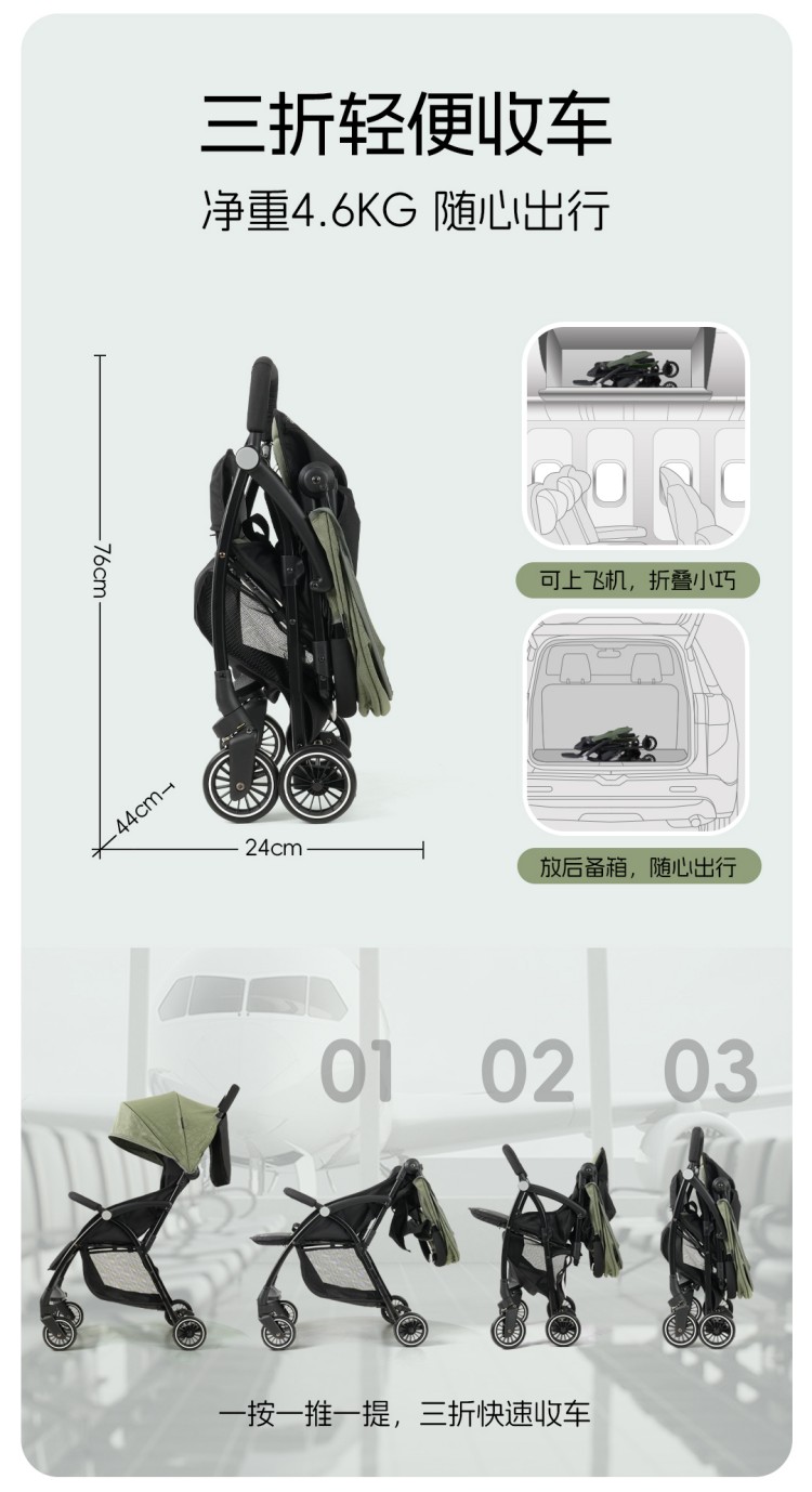 秋冬出行爆款遛娃神器手推车可坐可躺儿童溜娃轻便可折叠双向四轮推车轻便折叠婴儿车