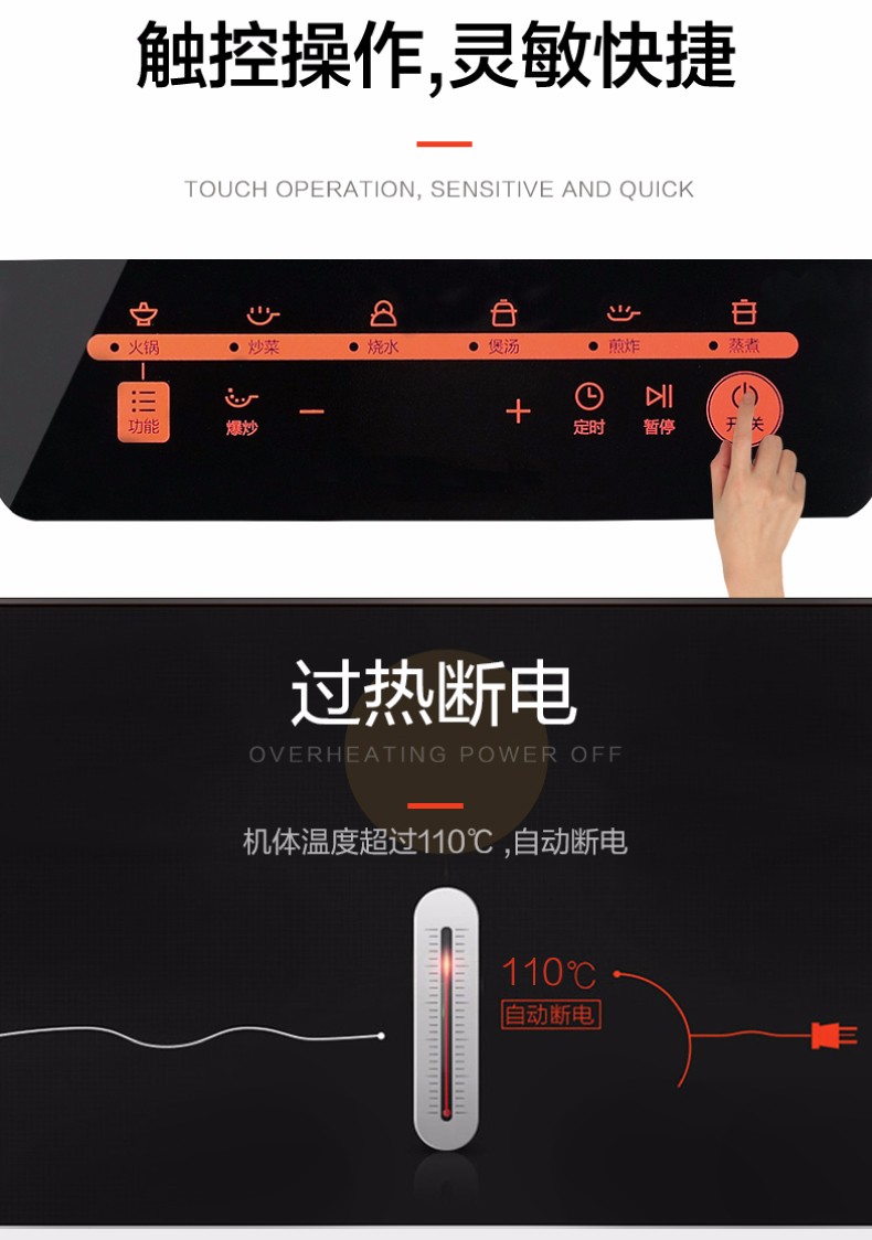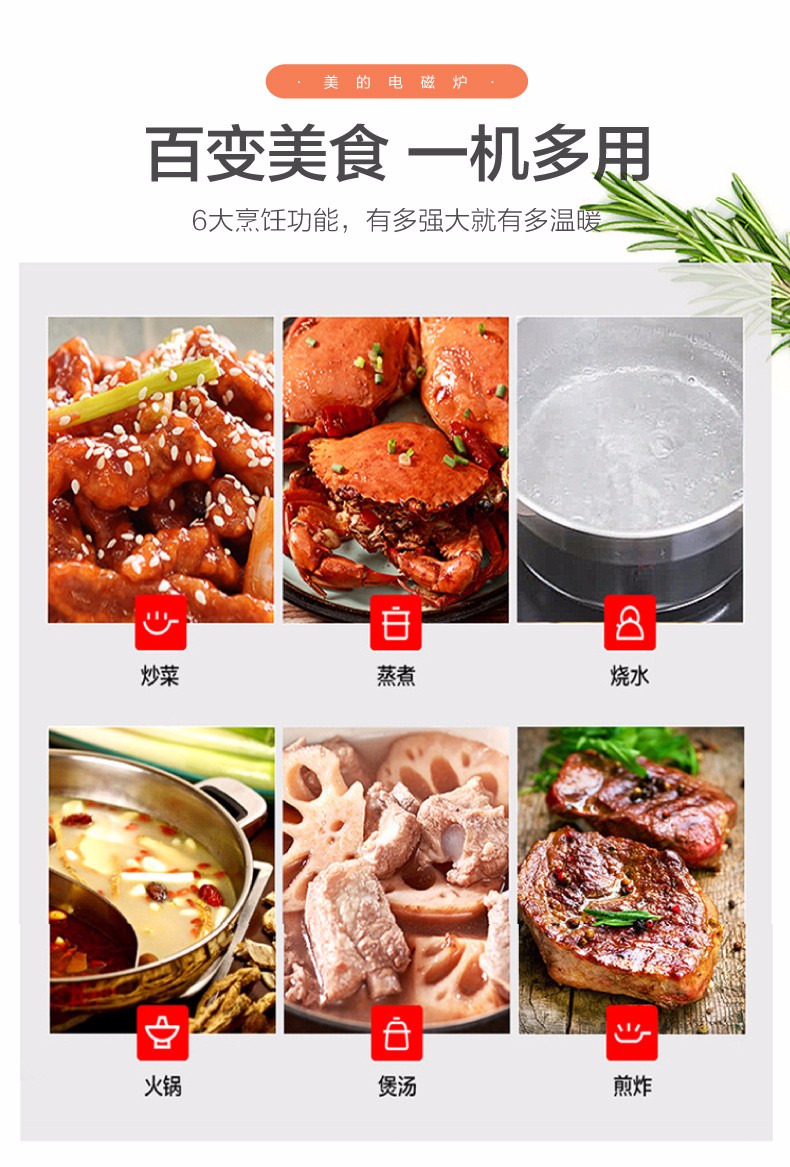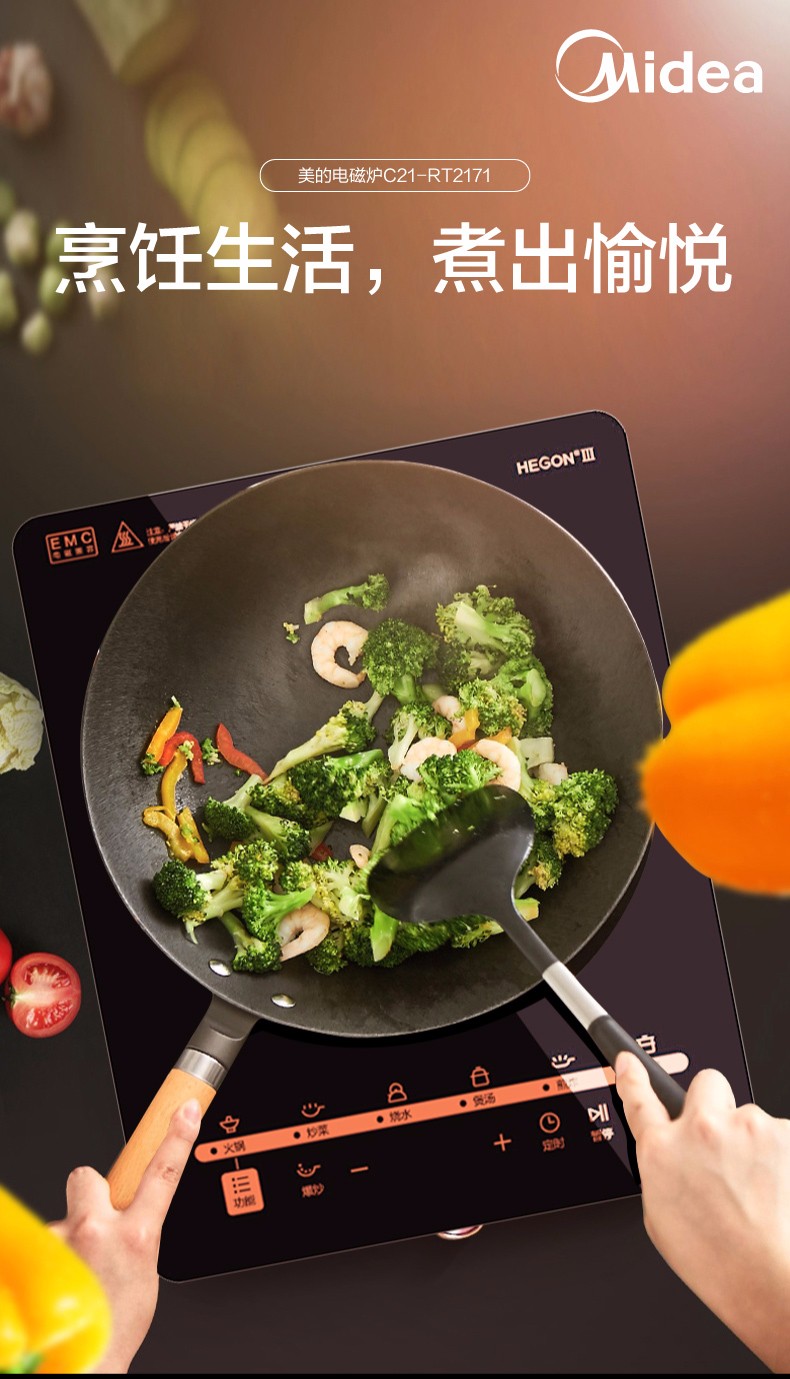 【授权商品】美的(Midea) 触控黑晶面板 智能多功能电磁炉 C21-RT2171