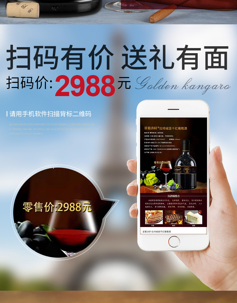 法国进口 格拉洛城堡珍藏干红葡萄酒礼盒节日送礼婚礼酒席红酒