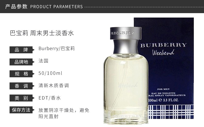 英国巴宝莉BURBERRY周末男士香水EDT100ML