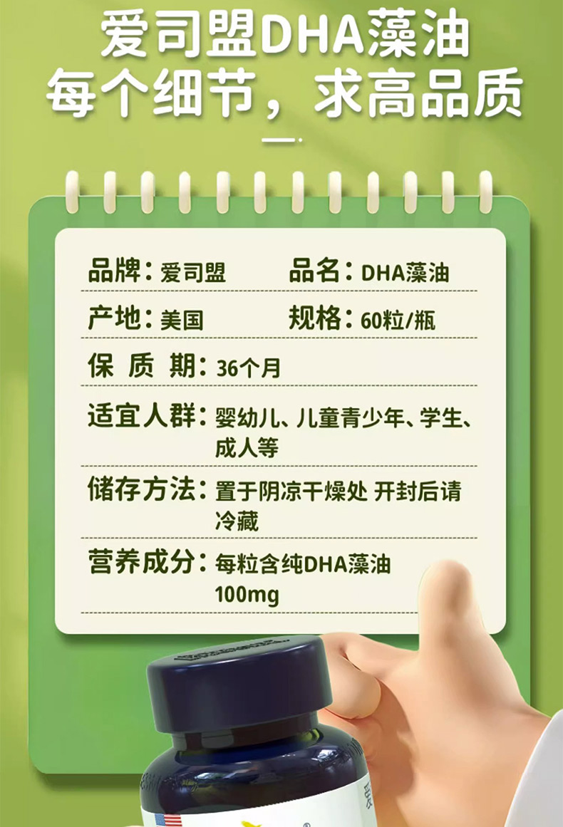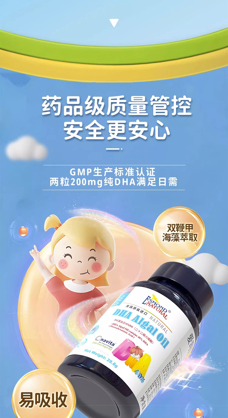 乐佳善优DHA藻油软胶囊60粒15.9g新包装,0岁以上适用,美国原装进口