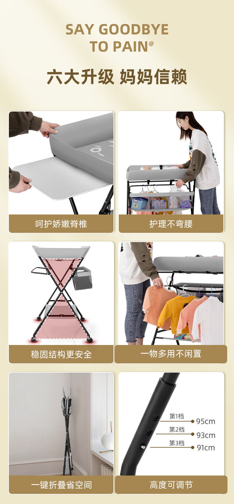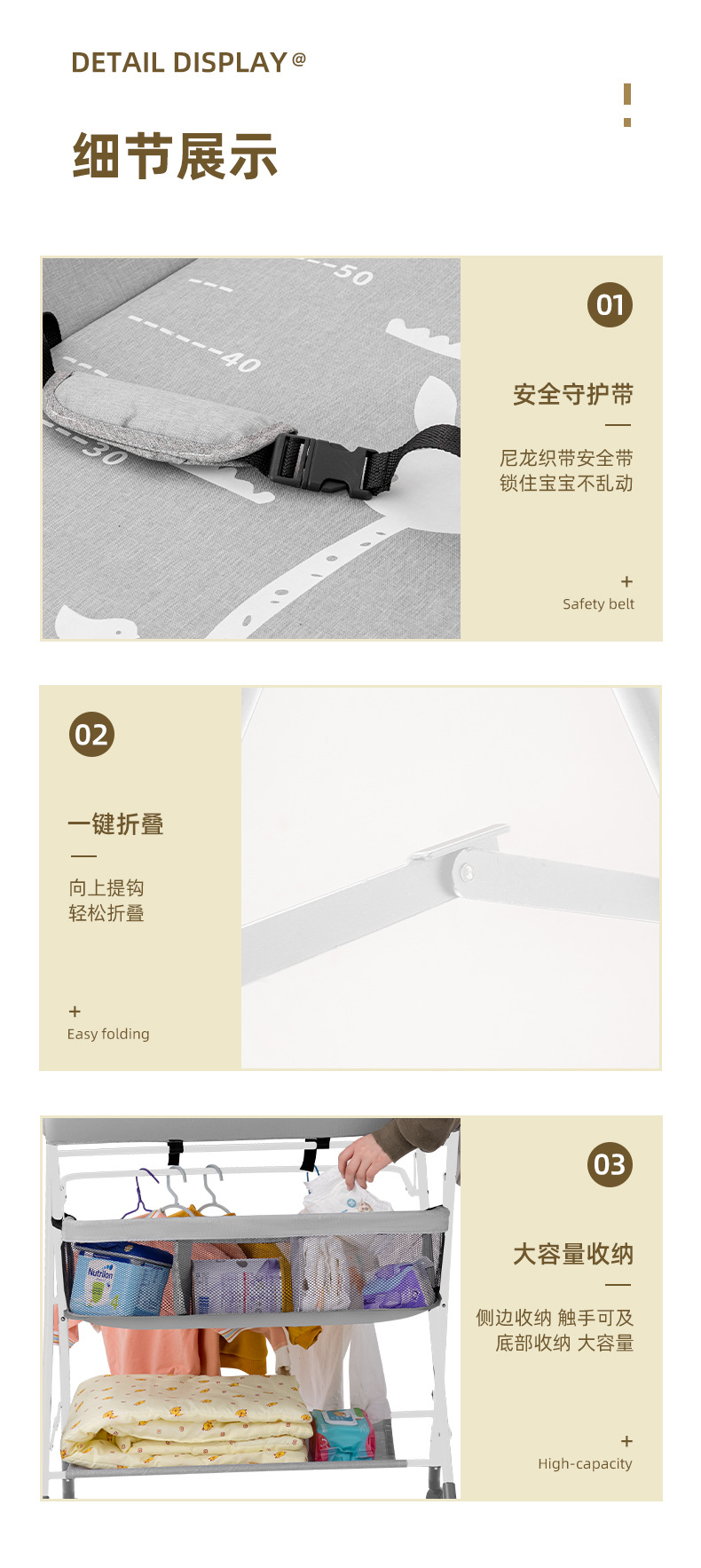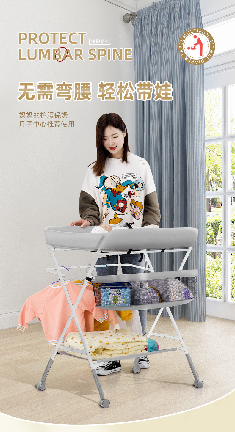 兜好尿布台婴儿护理台新生儿按摩抚触洗澡换尿布台可折叠可移动婴儿床