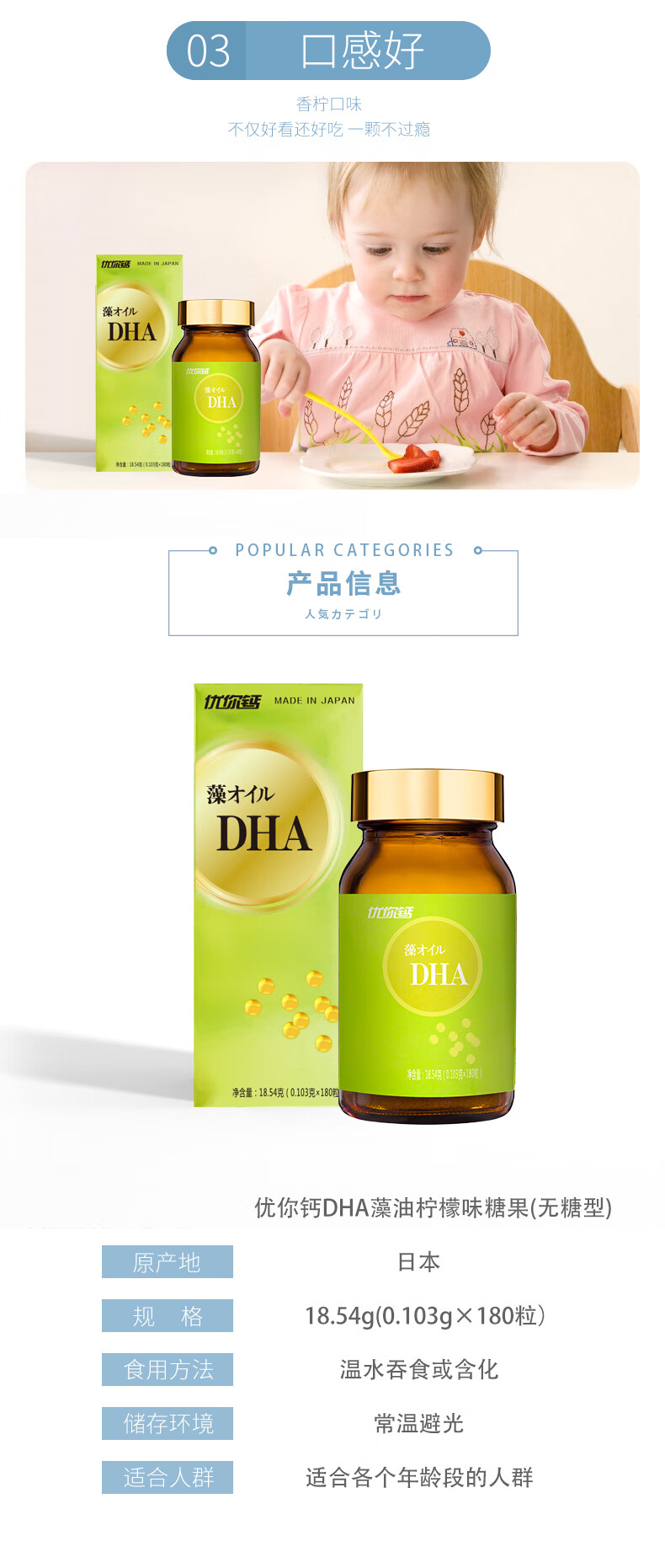 【源码】提拉米TLAMEE DHA海藻油小金豆凝胶糖果柠檬味不腥婴幼儿童