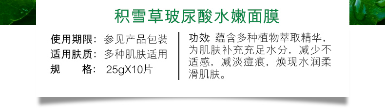 欧佩积雪草玻尿酸水嫩面膜25ml*10片