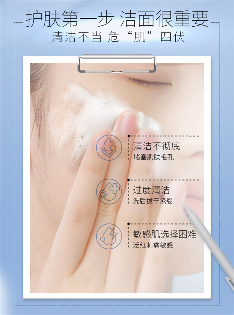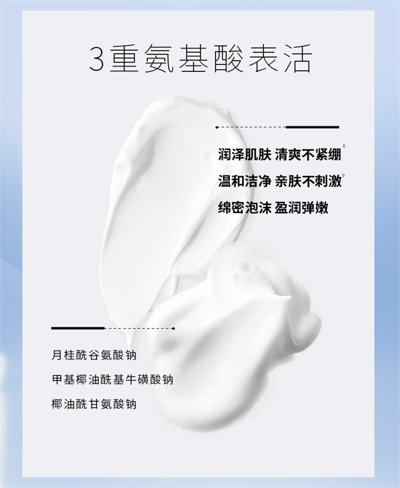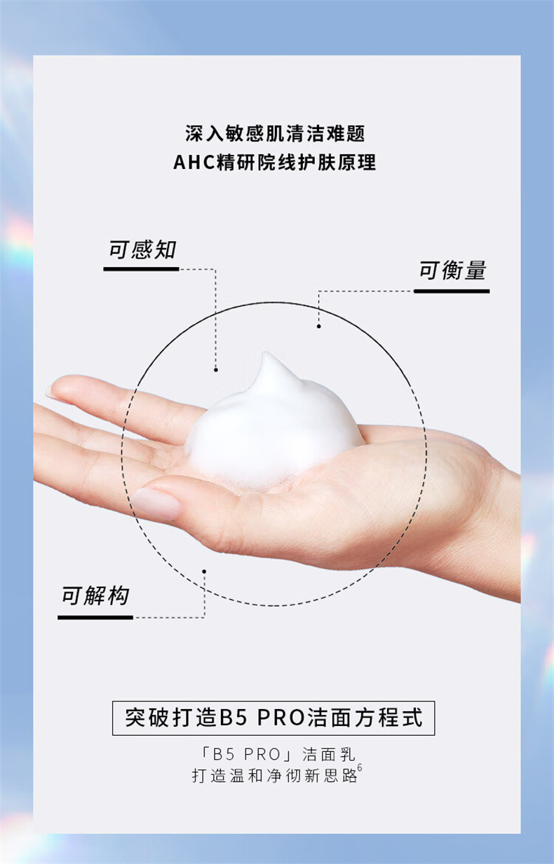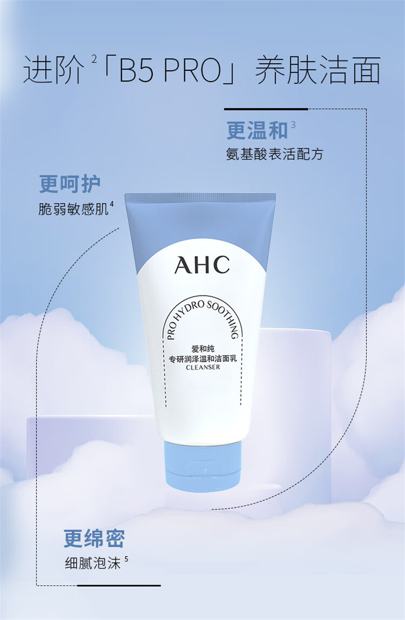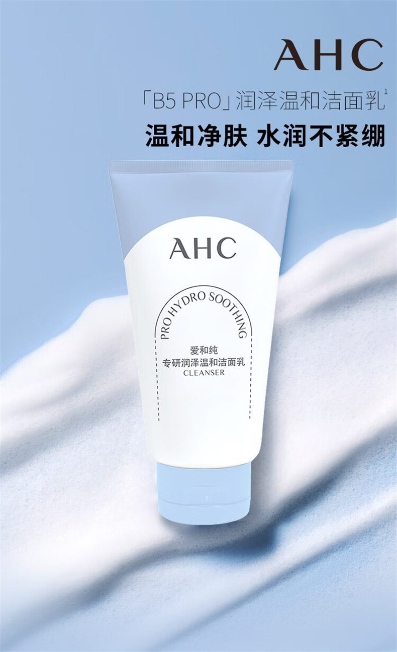 AHC进阶养肤洁面,三重氨基酸表活,温和洁净,亲肤不刺激,润泽肌肤,清爽不紧绷。