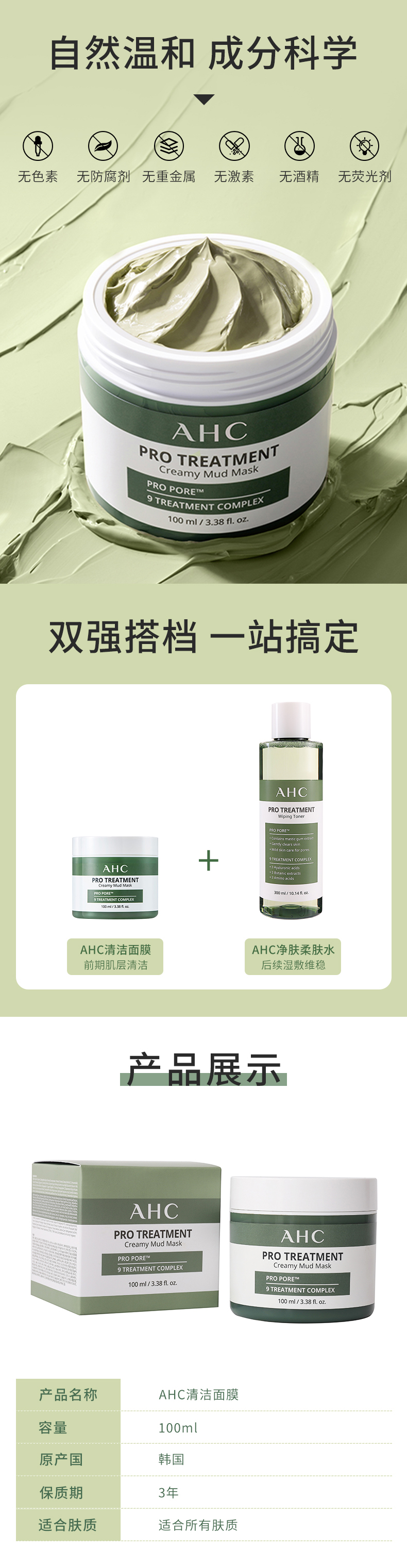 新品上市,AHC绿泥清洁涂抹式面膜,有效清洁毛孔去黑头粉刺闭口