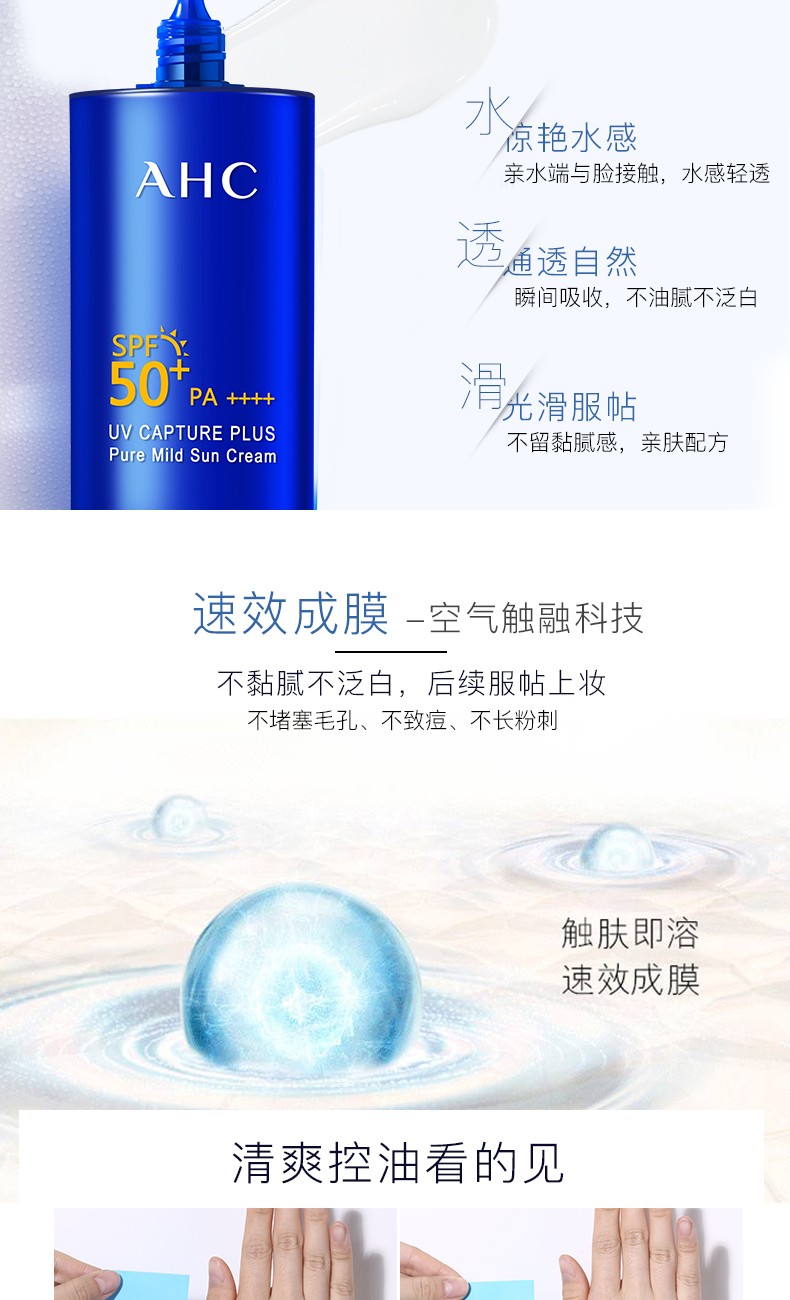新版 韩国AHC爱和纯小蓝瓶纯净温和防晒霜90ml ,敏感肌隔离面部夏季清爽控油