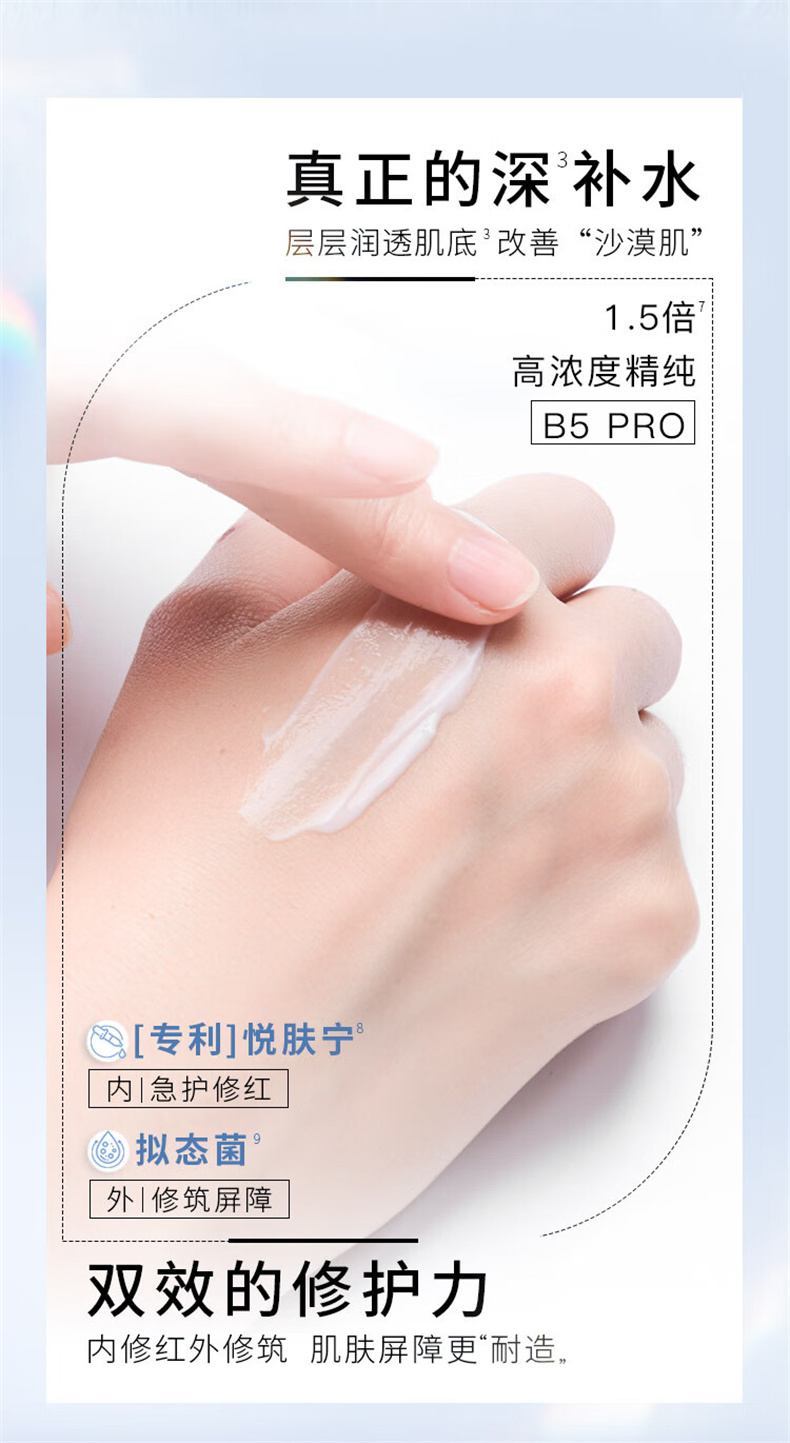 深层补水,强效滋养,层层润透肌底,改善“沙漠肌”。双效修护力,修筑肌肤屏障。小蓝瓶,欧莱雅、佰草集、