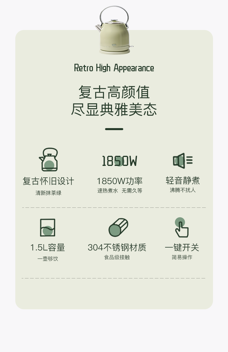 日本VDADA电热水壶家用复古304不锈钢煮水泡茶专用自动断电烧水壶