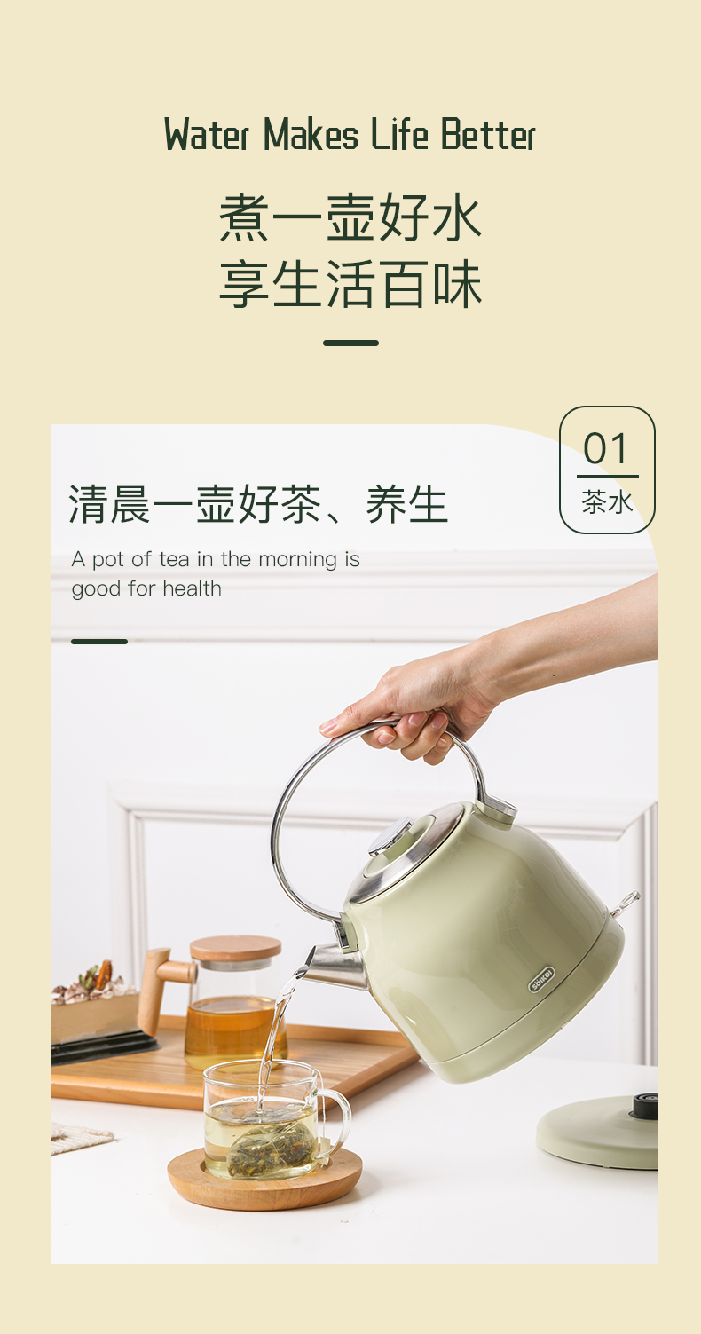 长虹方灯F8不保温款/F9保温款 2.2升装电热水壶-德诚