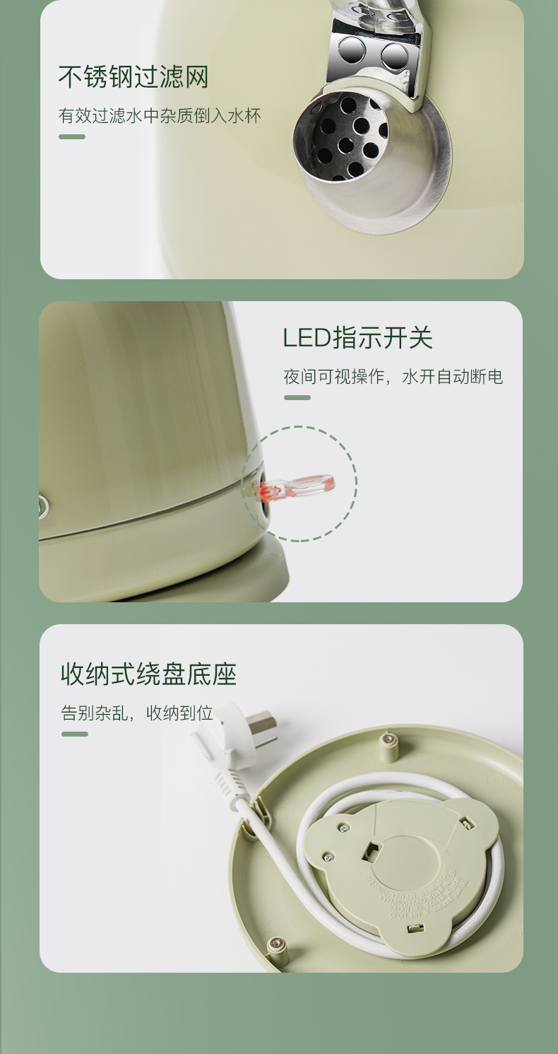 长虹提盖式绿色款智能保温热水壶2.2升装 CSH-MD8-得林