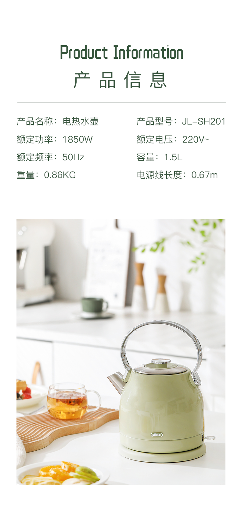 日本SOIKOI 玻璃电热水壶 JL-SH101
