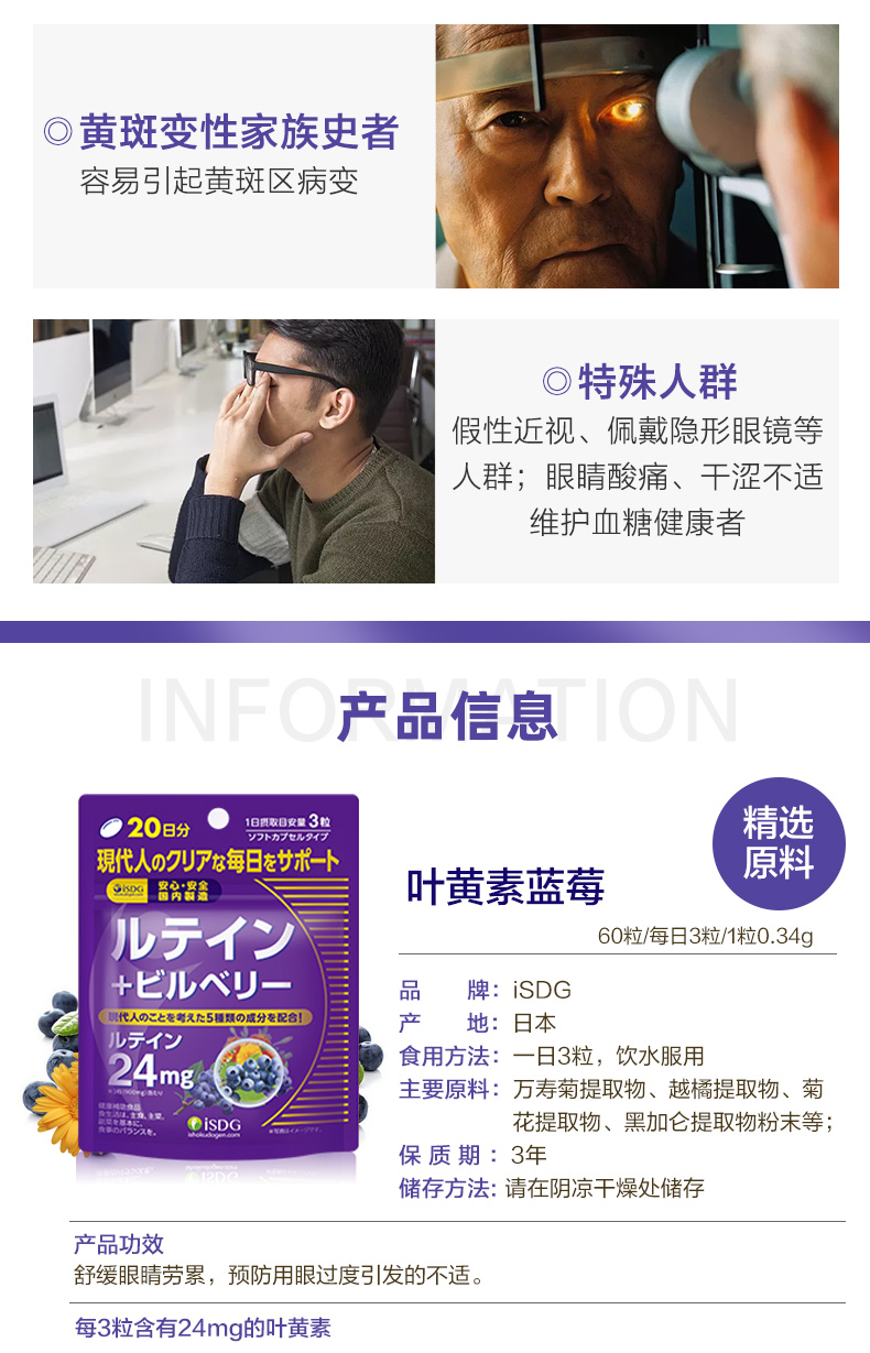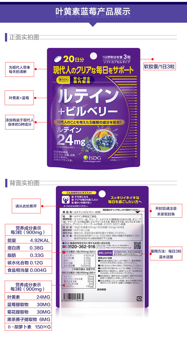 DHC速攻蓝莓眼部精华叶黄素花青素眼片3倍营养疲劳干涩