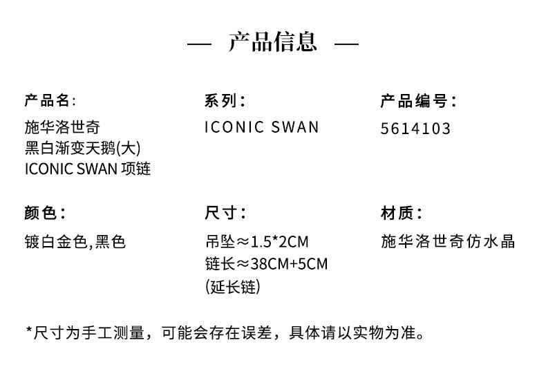 Swarovski/施华洛世奇正品黑白渐变色天鹅女士锁骨项链5614103礼物