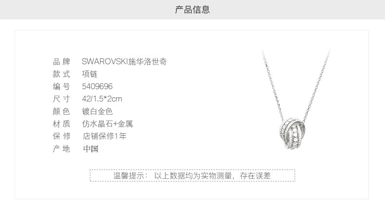 Swarovski/施华洛世奇正品幸运转运珠双环气质项链水晶镶钻长款女5409696礼物