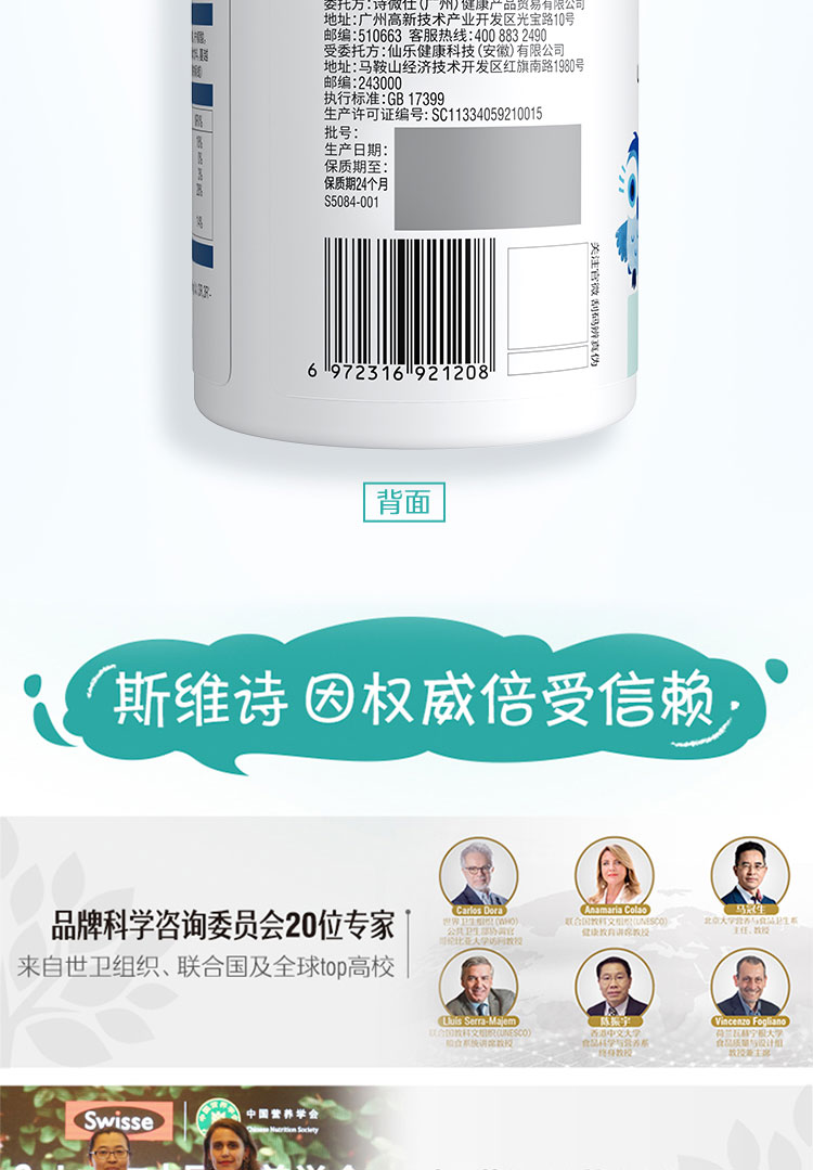 Swisse是一个全球性的专业营养品牌,由Kevin Ring于1969年在澳大利亚墨尔本创立。该品牌致力于研发结合现代科学认证和传统有效经验的产品,旨在让全世界人们生活得更健康、更快乐。Swisse的产品线非常丰富,包括美容养颜、益生菌类、运动健康、骨骼健康等多个产品大类,以满足不同年龄和性别人群的需求。品牌的产品原料多来源于各种植物,添加剂较少,因此相对安全,适合包括孕妇、老人和小孩在内的各类人群使用。