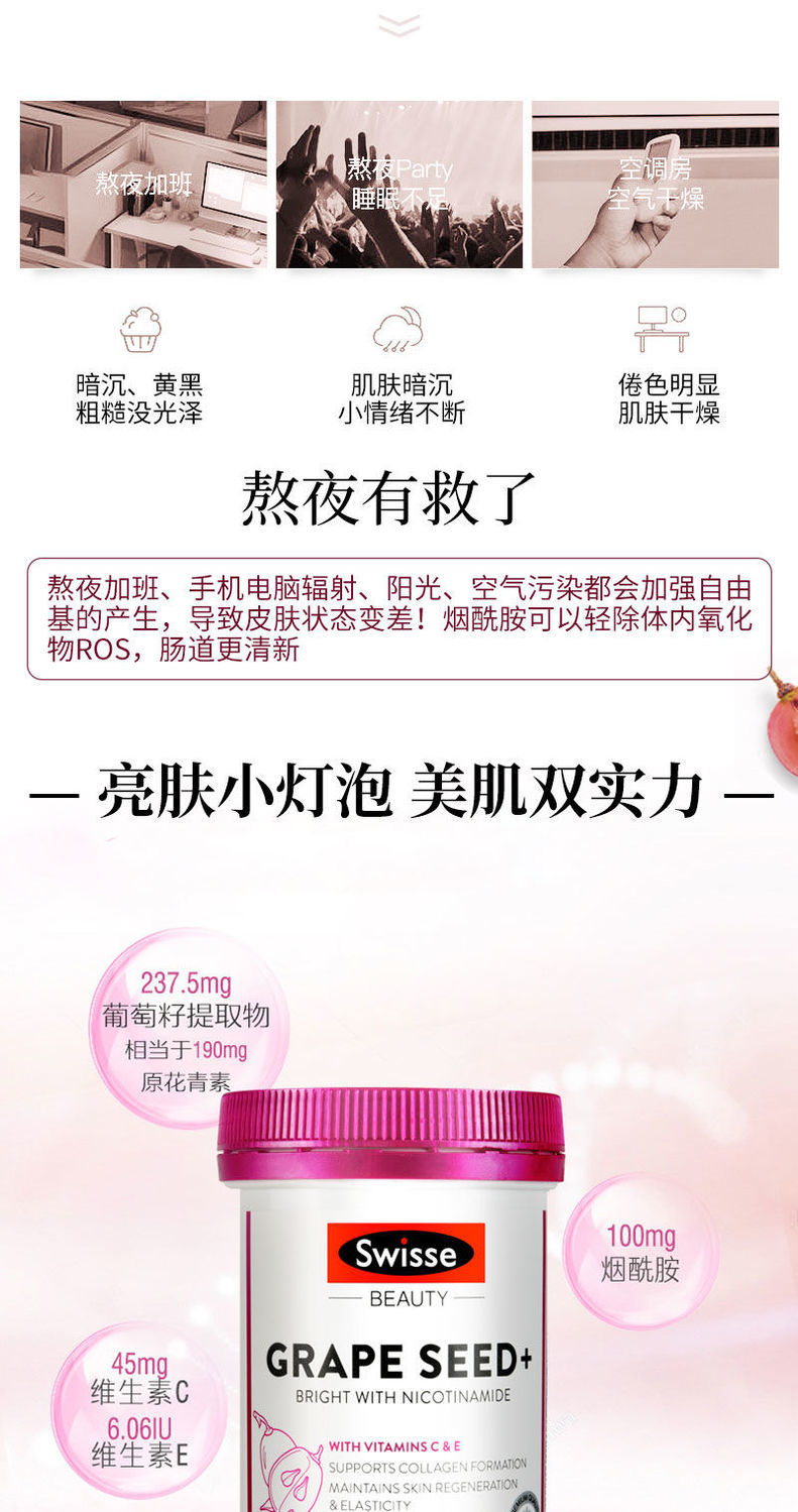 Swisse是一个全球性的专业营养品牌,由Kevin Ring于1969年在澳大利亚墨尔本创立。该品牌致力于研发结合现代科学认证和传统有效经验的产品,旨在让全世界人们生活得更健康、更快乐。Swisse的产品线非常丰富,包括美容养颜、益生菌类、运动健康、骨骼健康等多个产品大类,以满足不同年龄和性别人群的需求。品牌的产品原料多来源于各种植物,添加剂较少,因此相对安全,适合包括孕妇、老人和小孩在内的各类人群使用。