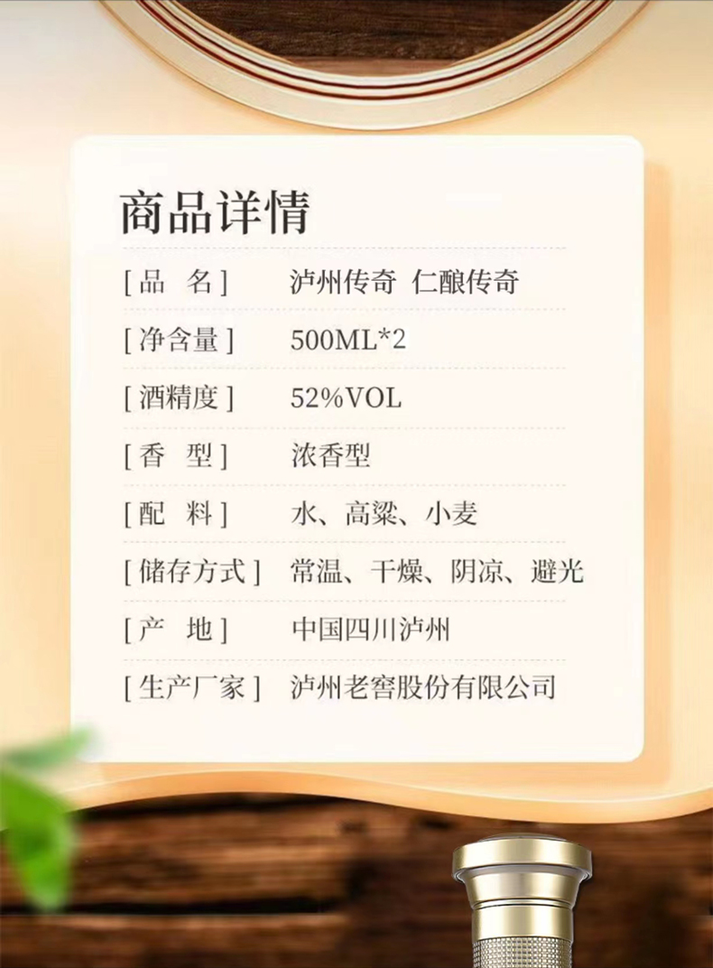 泸州传奇仁酿传奇500ml*2瓶礼盒