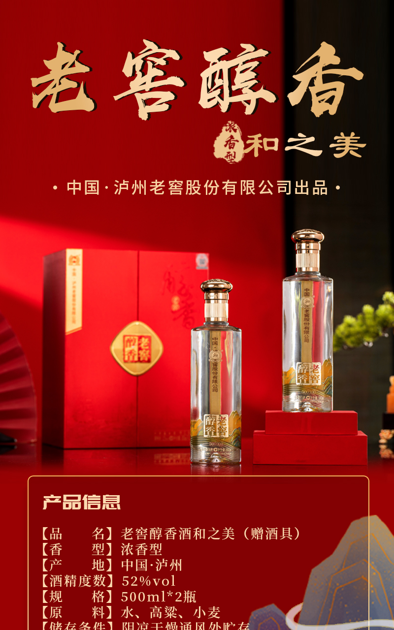 泸州老窖醇香和之美双支礼盒52度浓香型白酒500ml*2瓶含礼袋