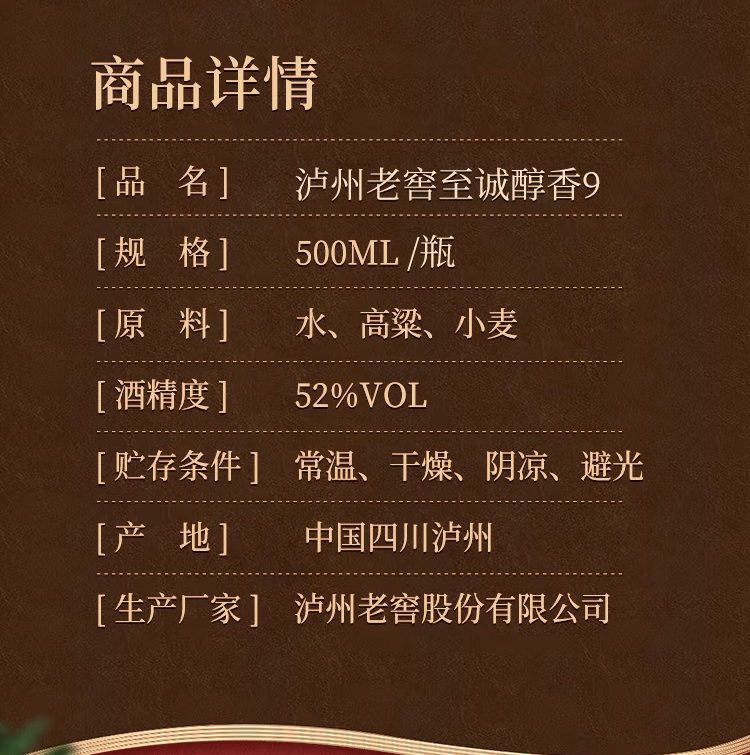 泸州老窖 52度泸州贡熊猫酒精品9 500ml*6瓶