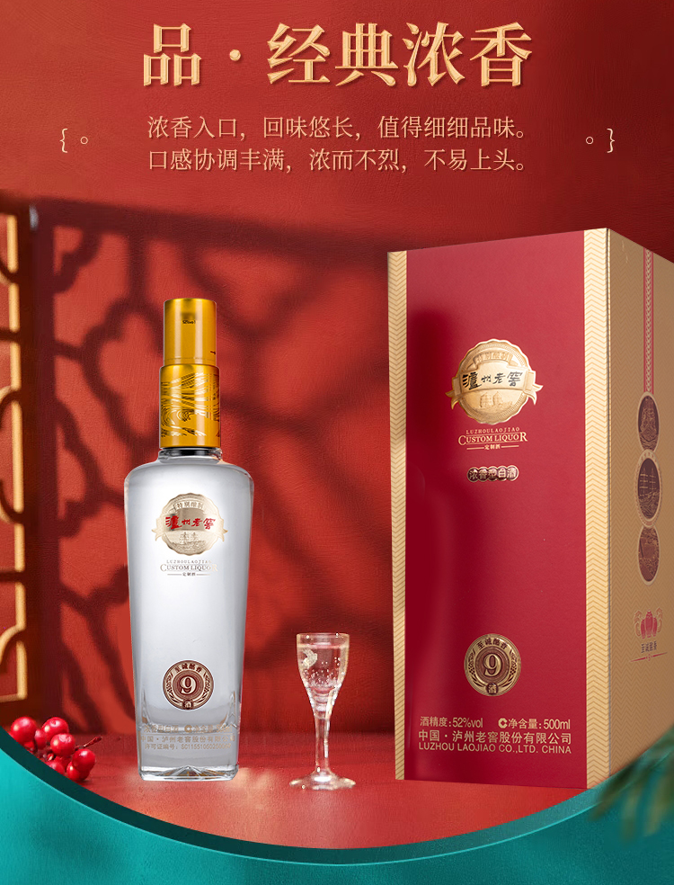 泸州老窖 老窖金牌耀顺52°浓香型500ml*2瓶
