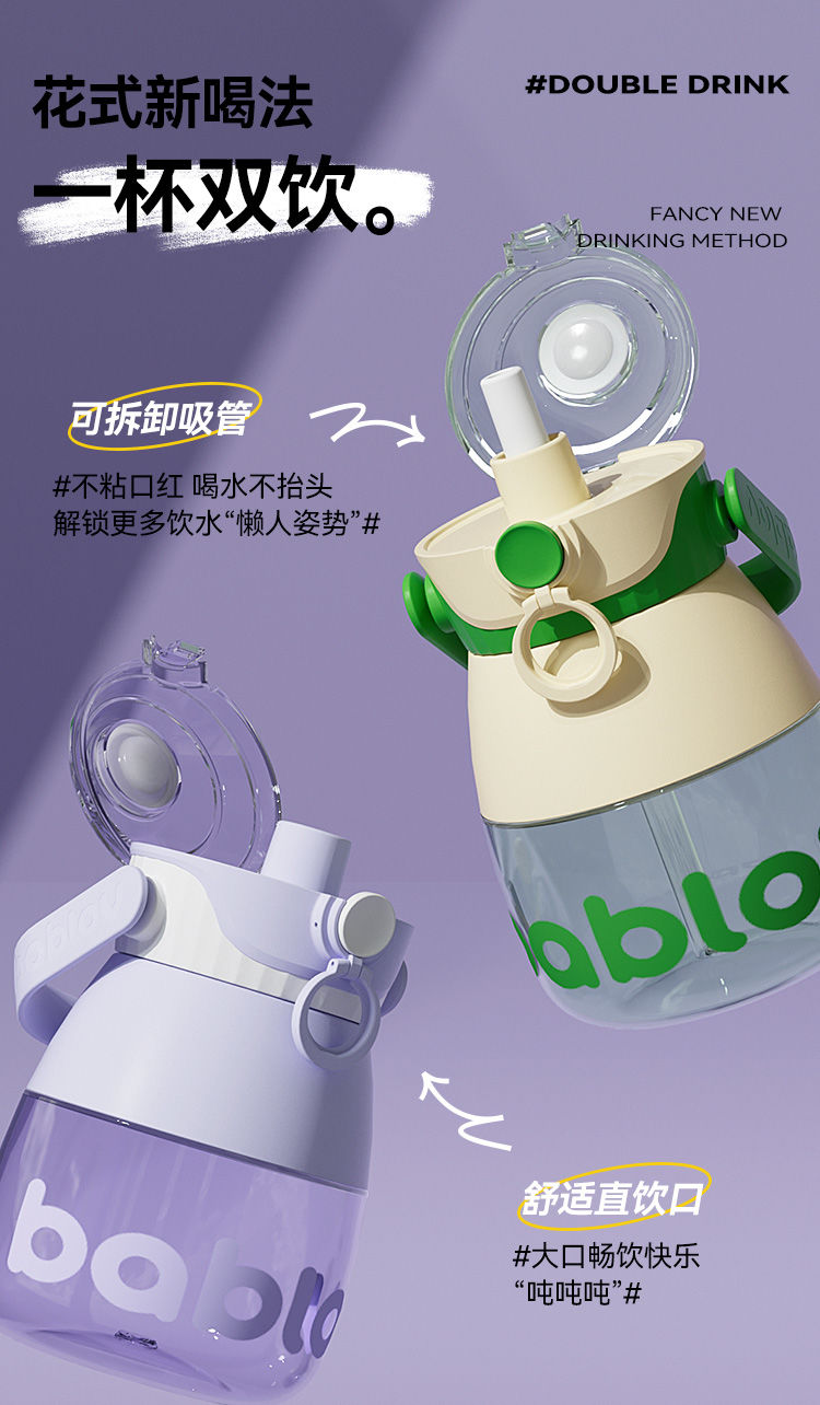 babycare恐龙冷萃杯儿童背带学饮杯霸王龙托比吸管水杯学生外出旅行大毫升500ml